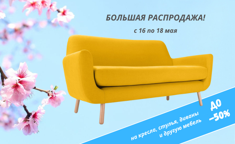 С 16 по 18 мая в магазине "Мир Кресел" пройдет специальная акция. В эти дни вы сможете купить диваны, кресла, стулья и другую мебель со скидкой до 50%. Это хорошая возможность обновить интерьер и сэкономить.