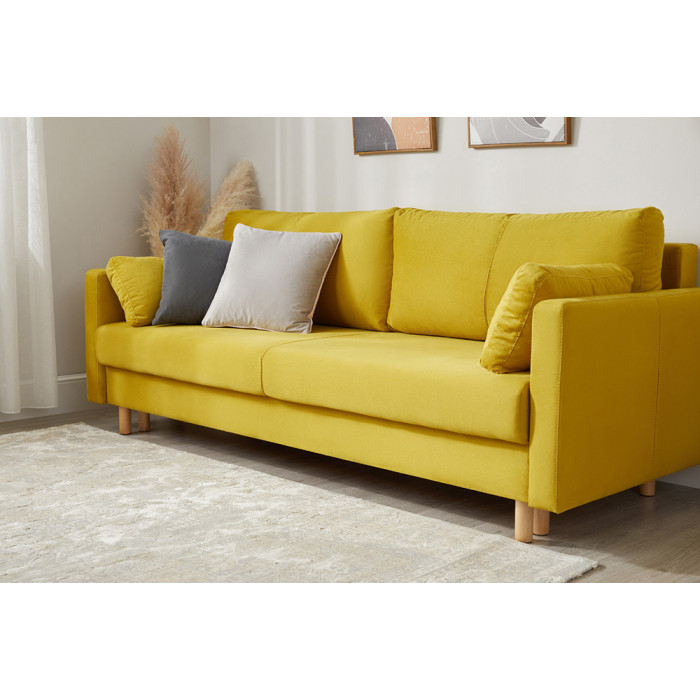 Диван-кровать Дублин на высоких деревянных ножках — элегантное решение для современного интерьера гостиной.