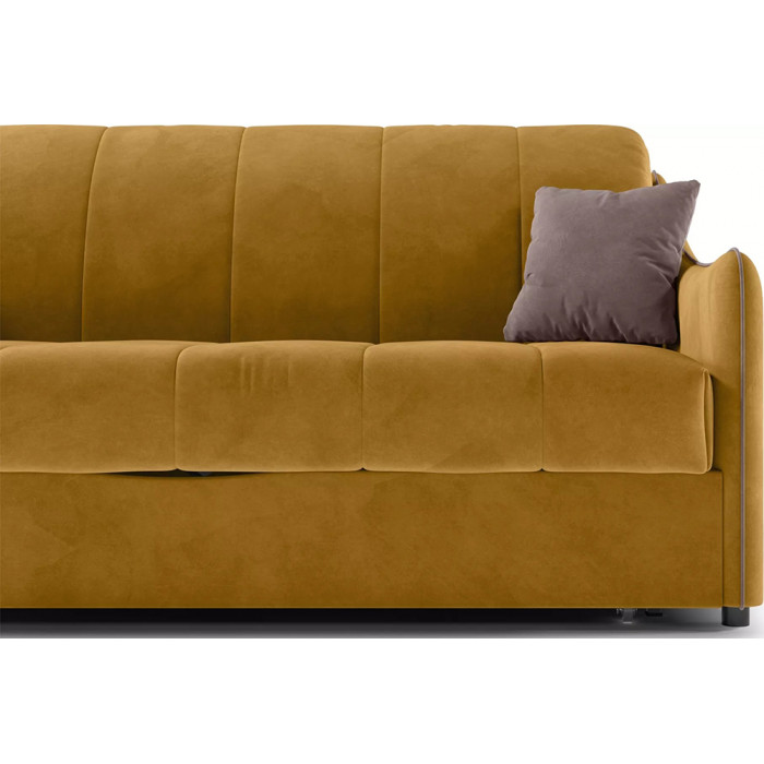 Диван Эско 32 АТС160 — стильный и практичный элемент мебели для дома, который сочетает в себе комфорт и элегантность. Механизм трансформации «аккордеон» позволяет легко преобразовать диван в удобное спальное место — отличный выбор для гостевых комнат, студий или небольших квартир. Яркий горчичный цвет обивки из велюра в сочетании с коричневыми декоративными подушками создают теплую атмосферу, а металлический каркас и блок независимых пружин с ППУ, синтепоном и термовойлоком обеспечивают надежную поддержку и комфорт.
