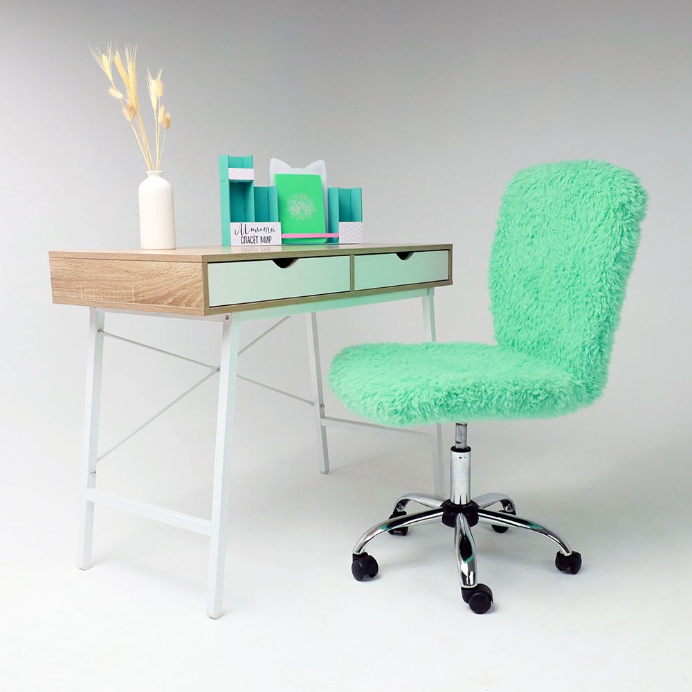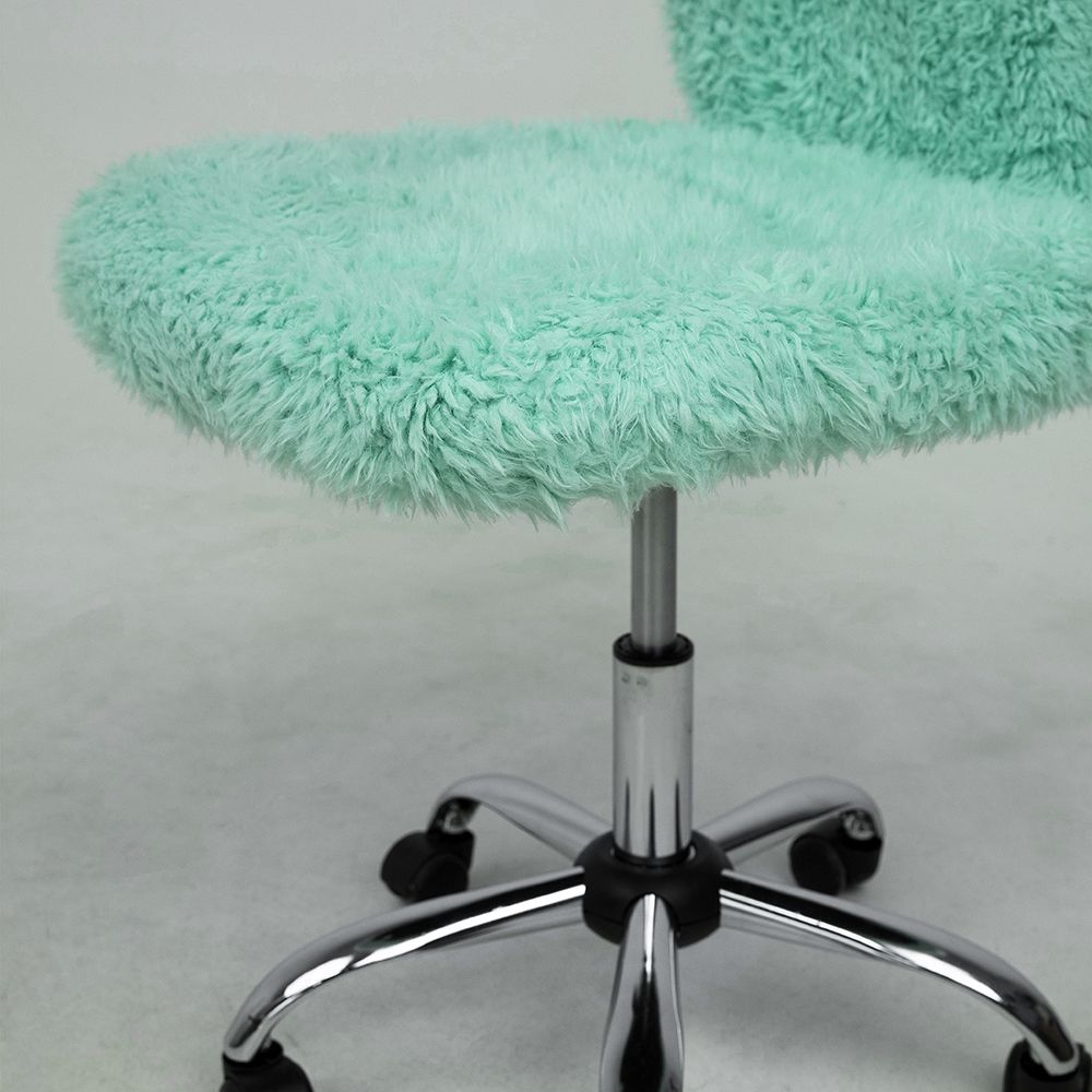 Спинка и сиденье выполнены из износостойкого и прочного искусственного меха. Ткань устойчива к разрывам и истиранием, а также неприхотлива в уходе. Колесики позволят комфортно перемещать кресло с места на место. Подлокотники не предусмотрены, однако это не влияет на комфорт.