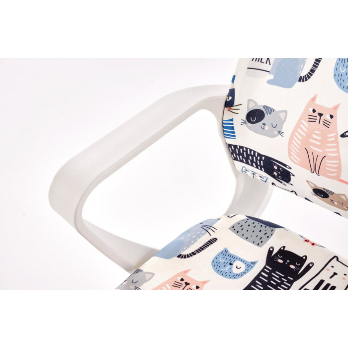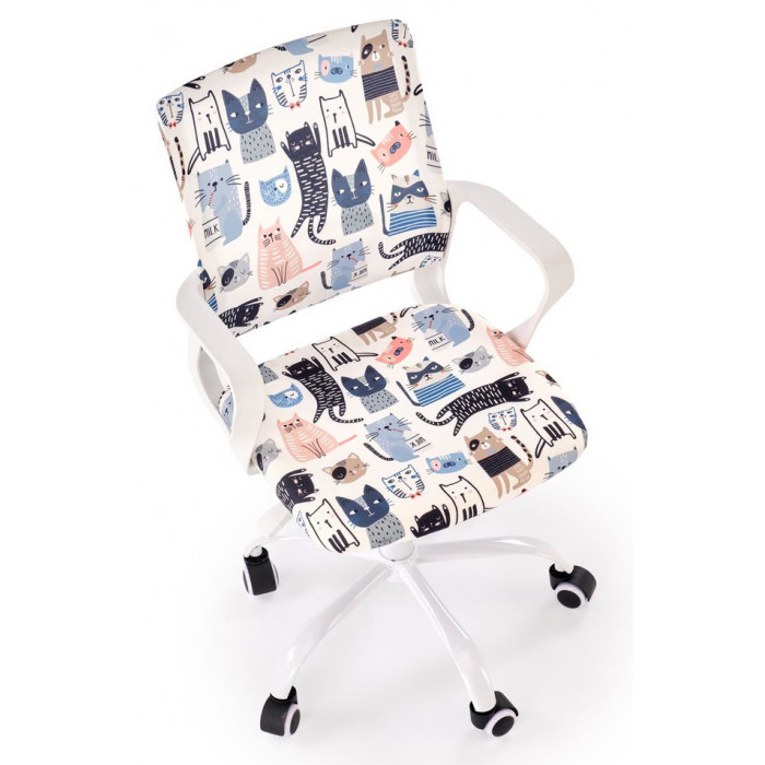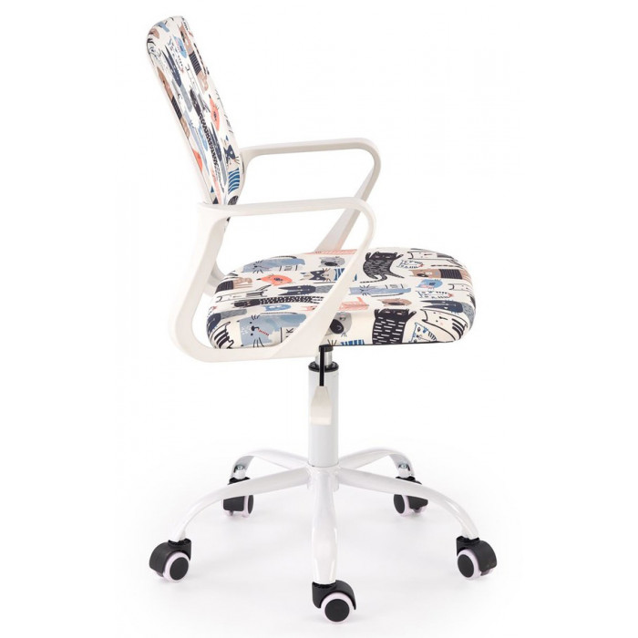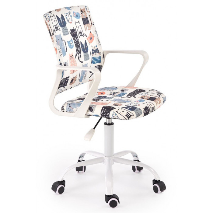 Кресло HALMAR ORIS с разноцветной тканевой обивкой и регулировкой высоты создано для комфорта детей и подростков. Надёжная конструкция на колёсиках выдерживает до 100 кг и подходит для учёбы и игр.