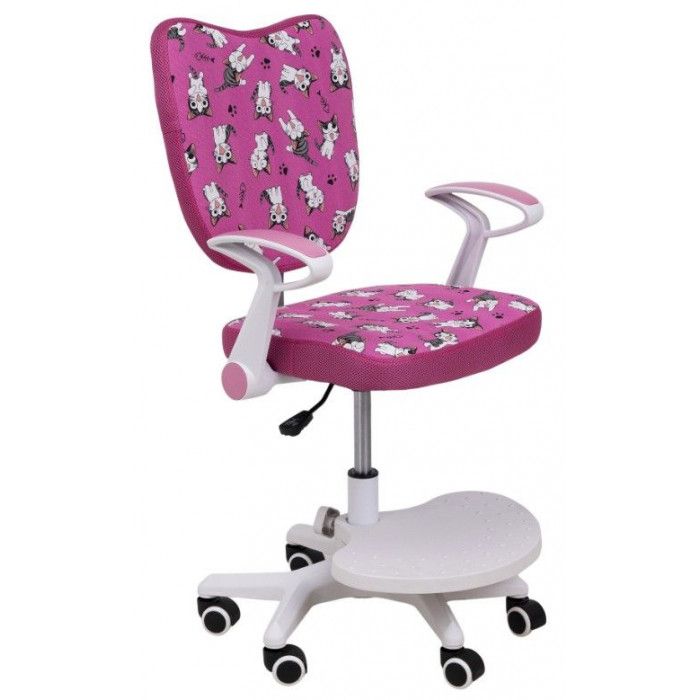 Кресло поворотное CATTY, WHITE, ткань фуксия с котятами купить в Минске