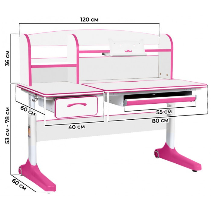 Детская парта Anatomica Uniqa белый/розовый купить в Минске