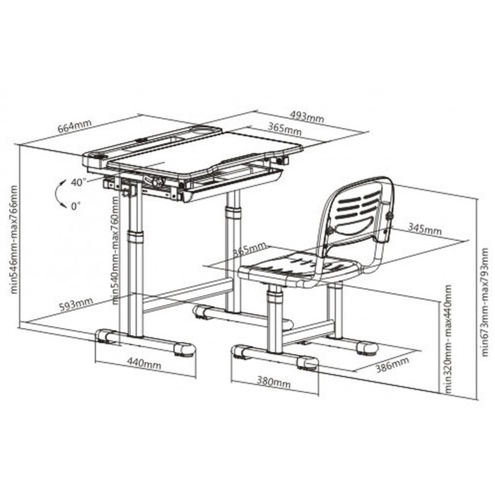 В ученический комплект входит: парта + стул + светодиодный светильник + подставка для книг.