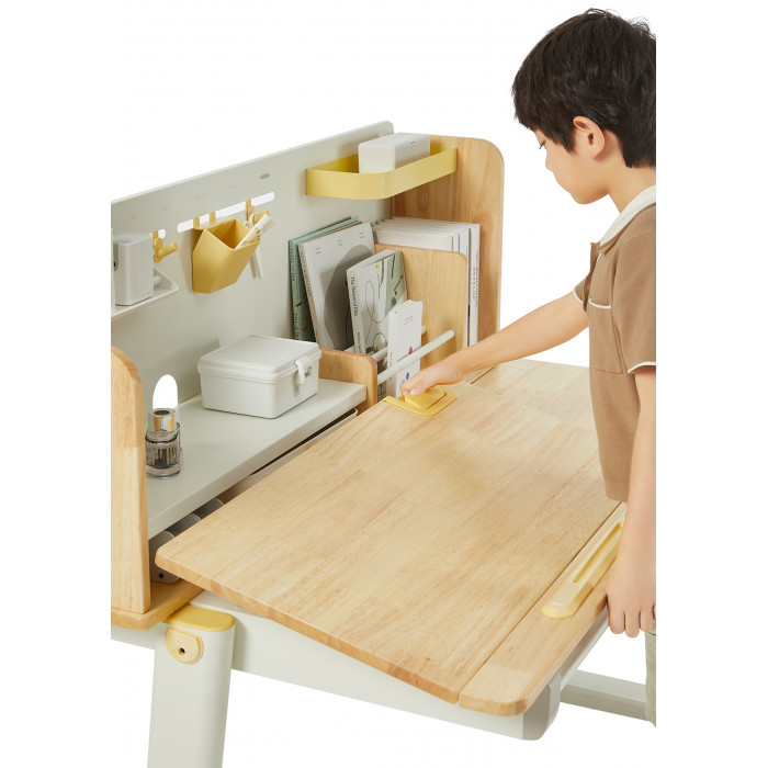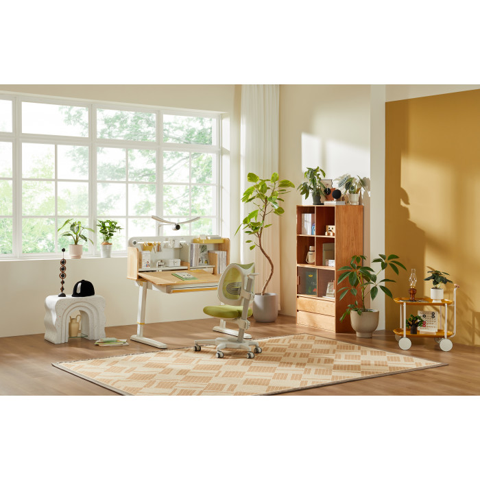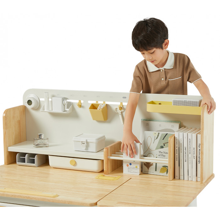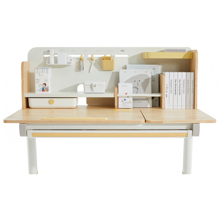 В ученический комплект Galeon входит: стол Galeon, книжная полка, защитное покрытие Sail.