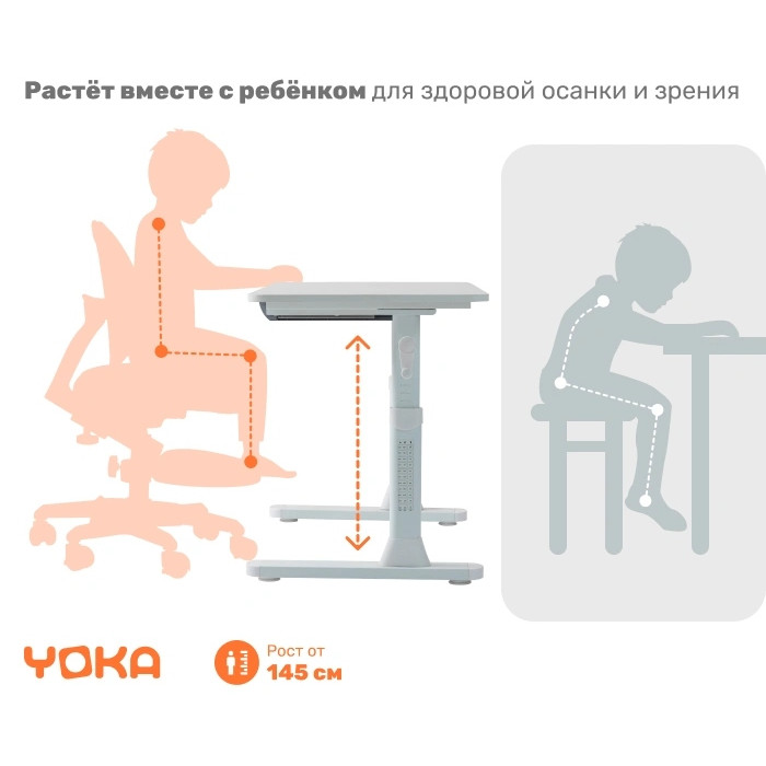 Растущая парта YOKA Elm 100 создаёт комфортное и безопасное пространство для учебы и творчества.