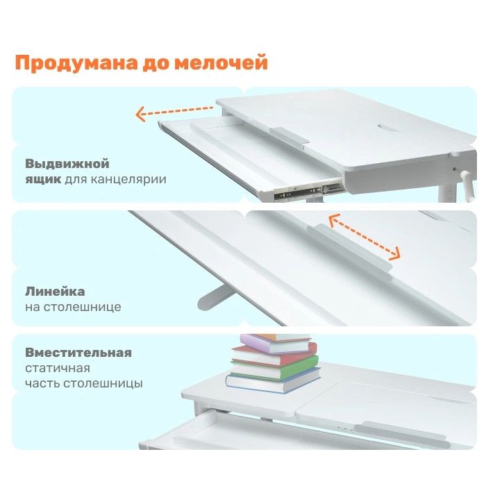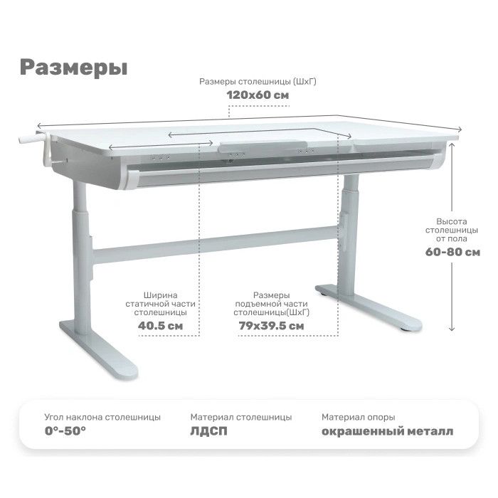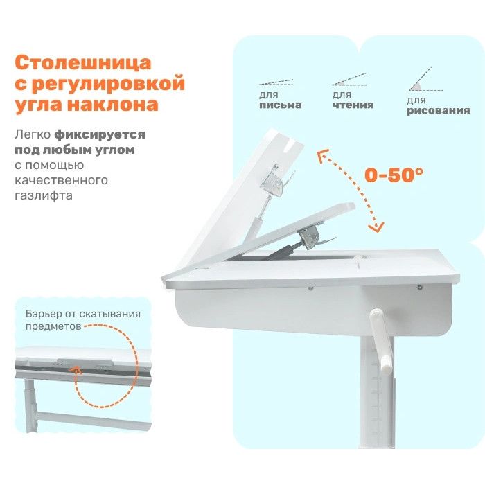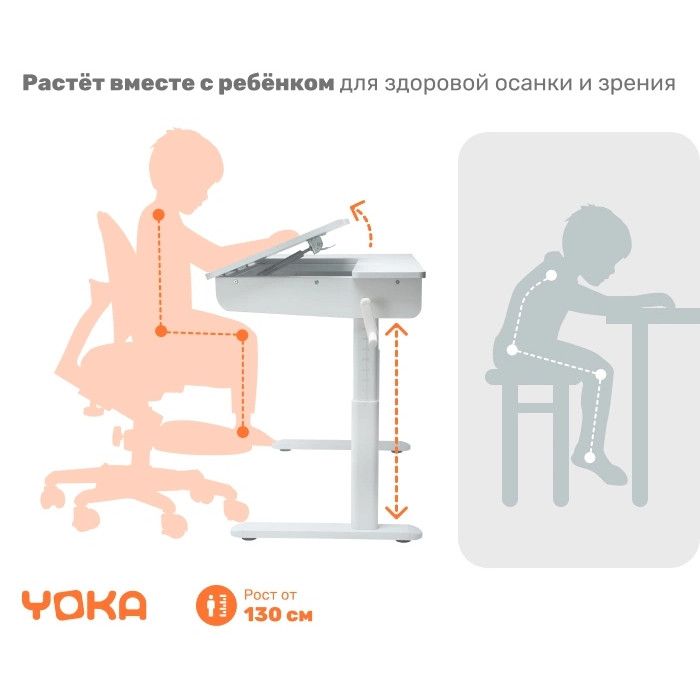 Растущая парта-трансформер Yoka Morty 120 – удобное рабочее место для школьников ростом от 130 см. Продуманная конструкция парты помогает ребёнку сохранить правильную осанку и хорошее зрение.