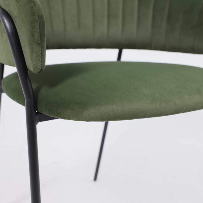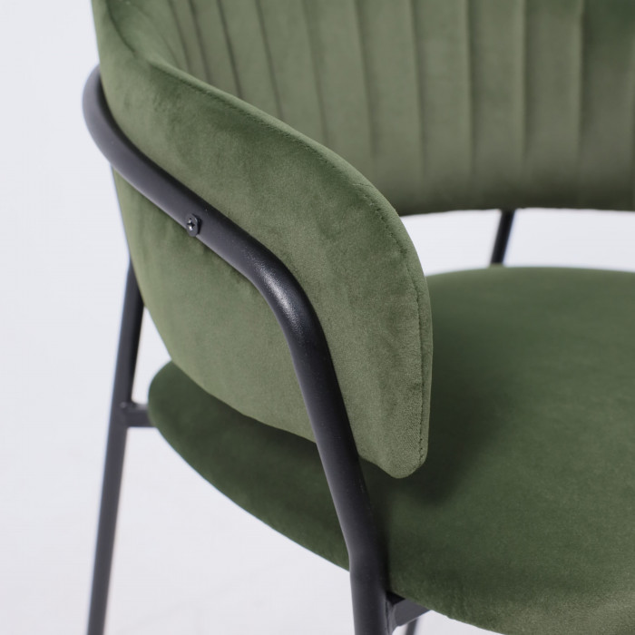Обивка из мягкого велюра придаёт ему роскошный вид и приятные тактильные ощущения. Металлическое основание обеспечивает прочность и долговечность, что делает этот стул не только красивым, но и практичным выбором для вашего дома или офиса.