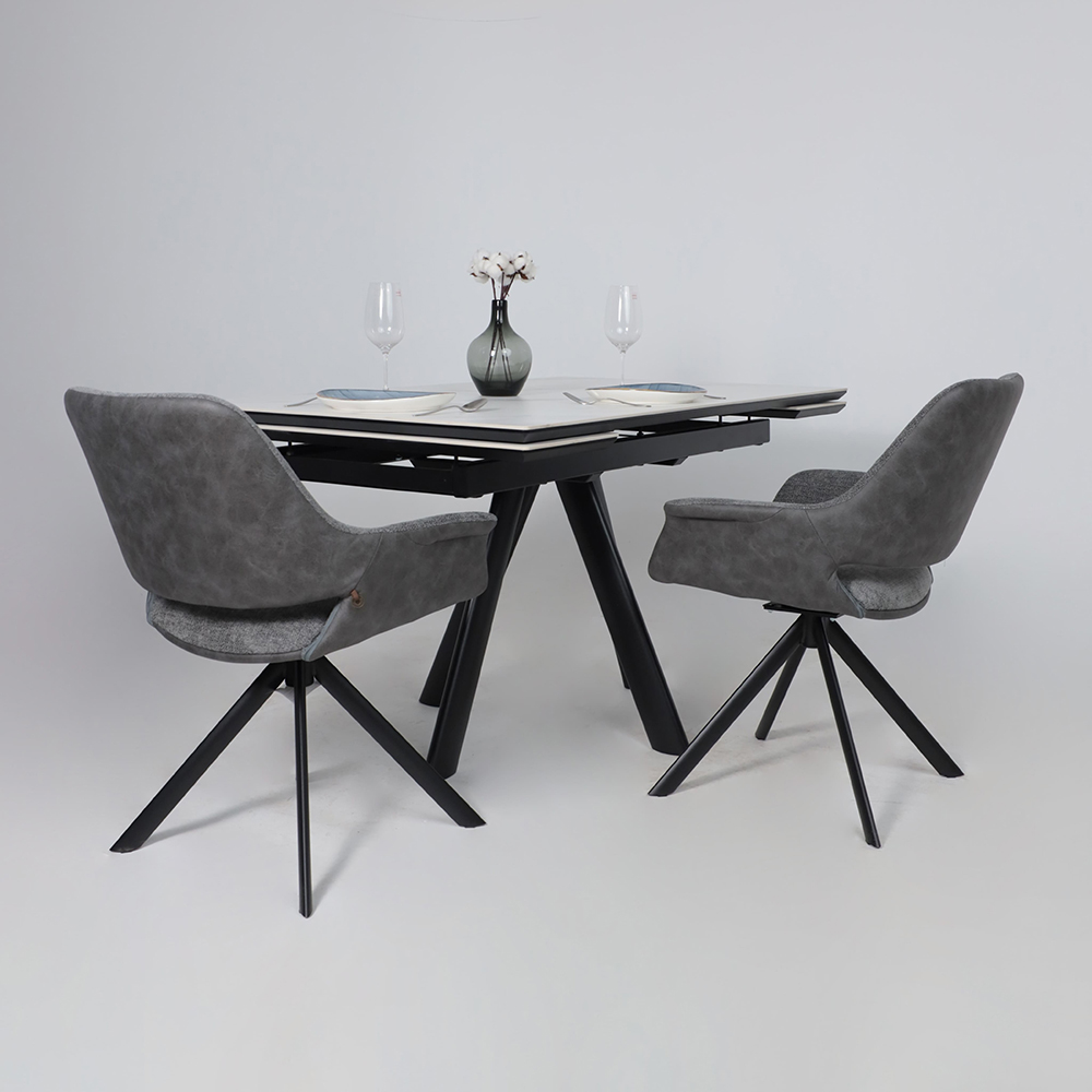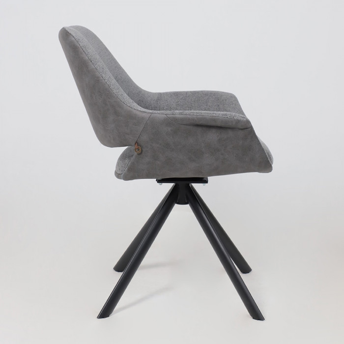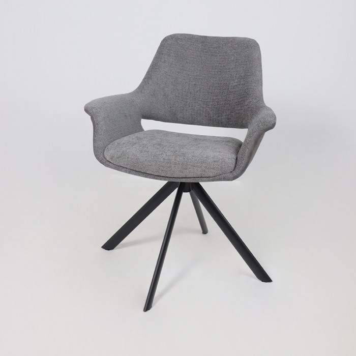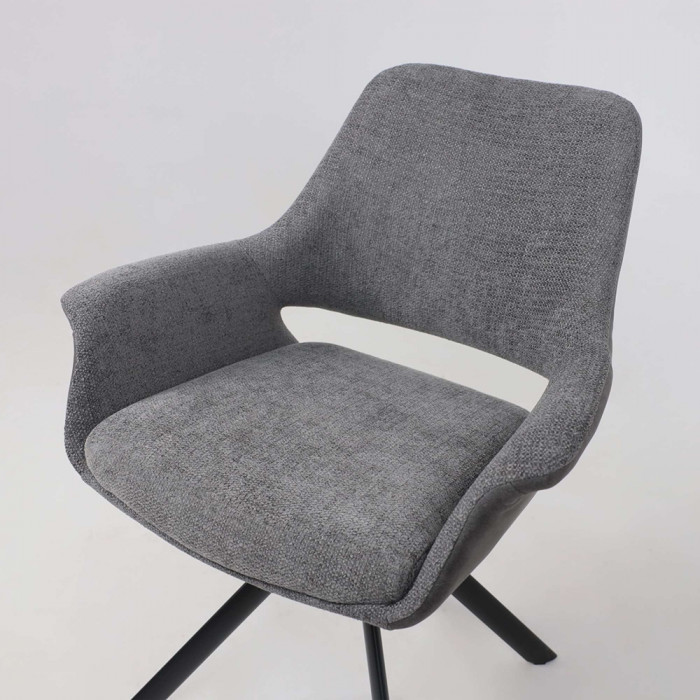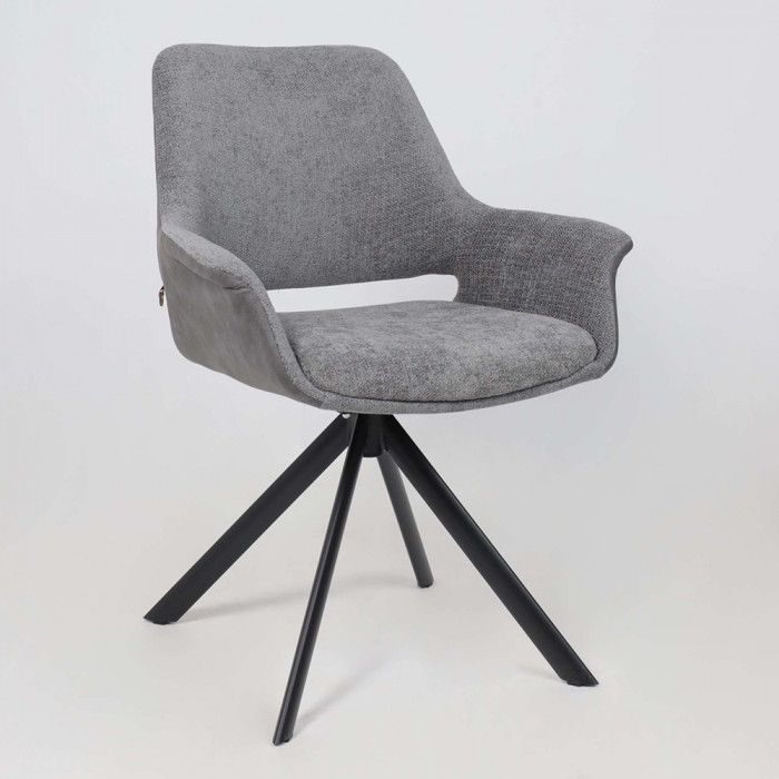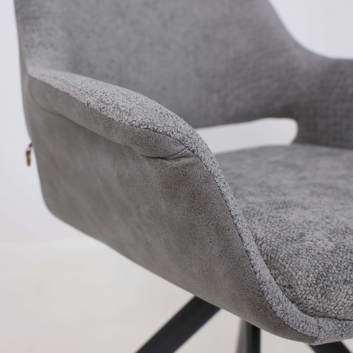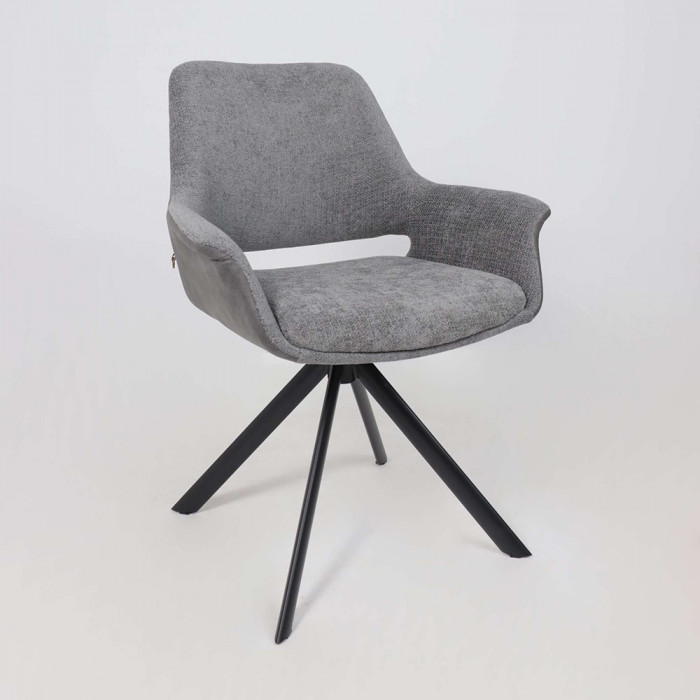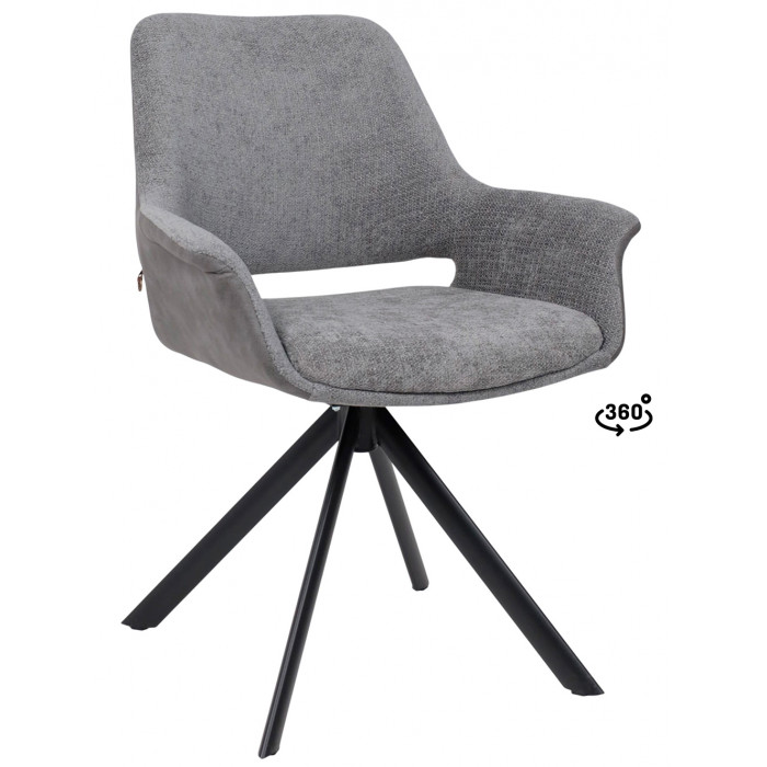 Его ключевая особенность — плавный поворот на 360 градусов, что обеспечивает легкость движений и удобство за обеденным столом. Комбинация благородных материалов — уютного шенилла и тактильной замши — делает стул приятным на ощупь. Прочное металлическое основание гарантирует устойчивость и долговечность, а эргономичные подлокотники добавляют комфорта во время отдыха или беседы.