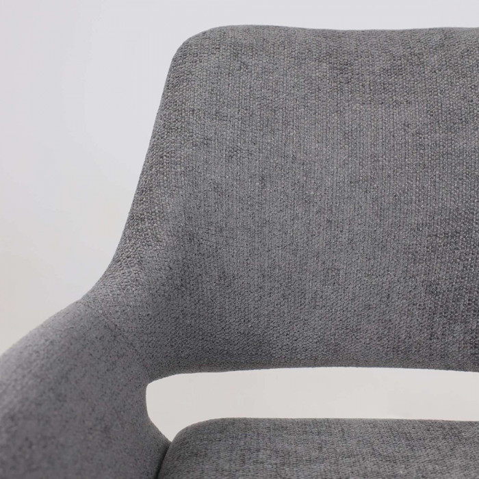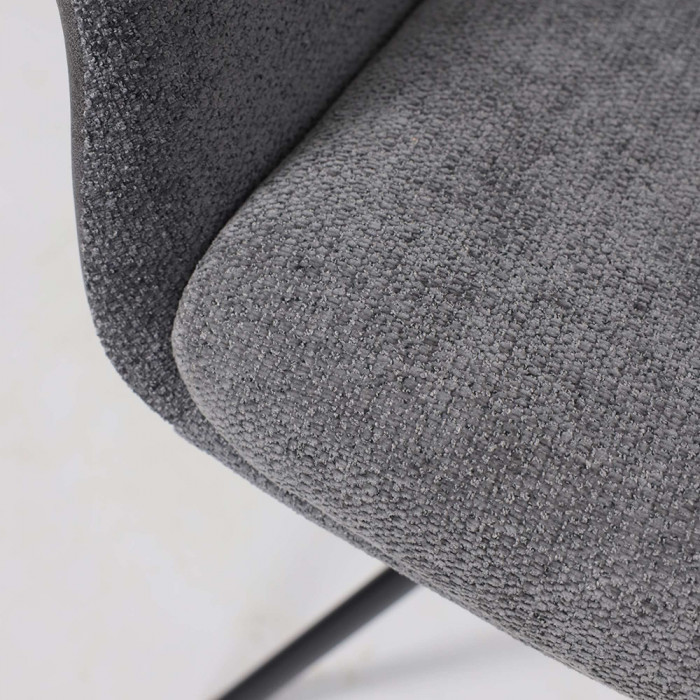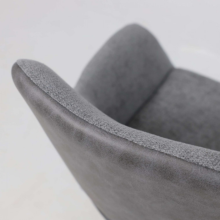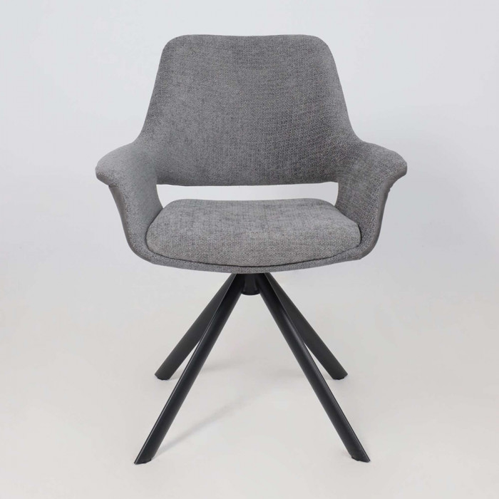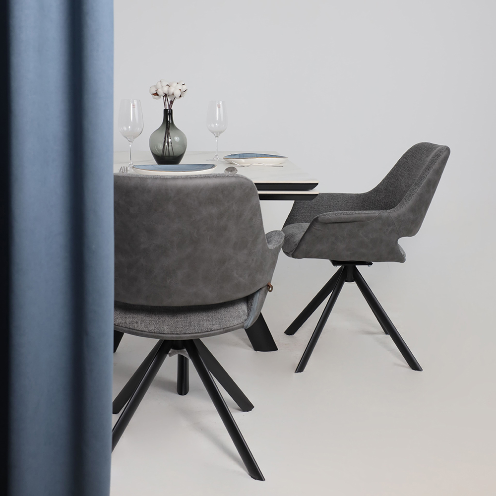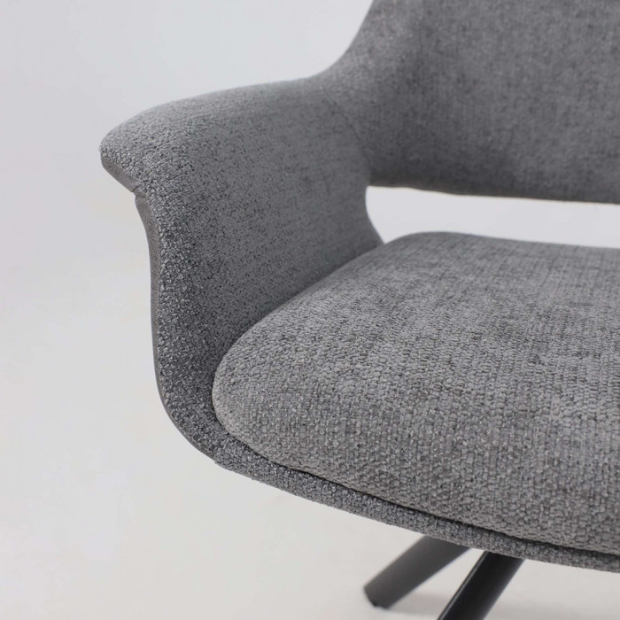 Его ключевая особенность — плавный поворот на 360 градусов, что обеспечивает легкость движений и удобство за обеденным столом. Комбинация благородных материалов — уютного шенилла и тактильной замши — делает стул приятным на ощупь. Прочное металлическое основание гарантирует устойчивость и долговечность, а эргономичные подлокотники добавляют комфорта во время отдыха или беседы.