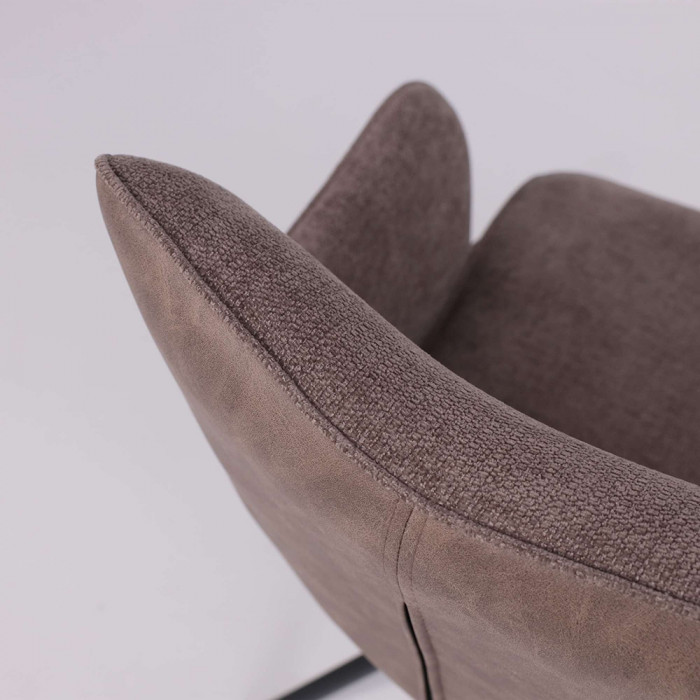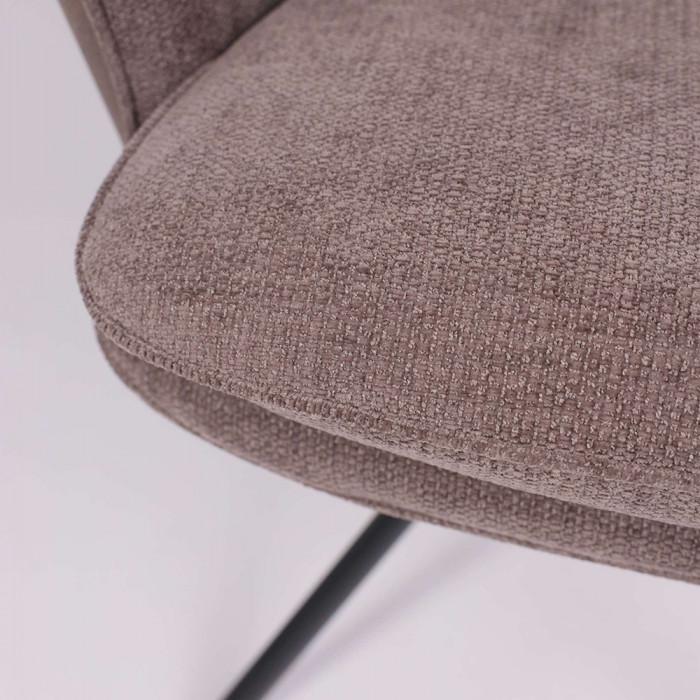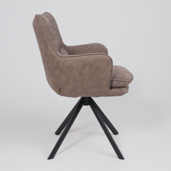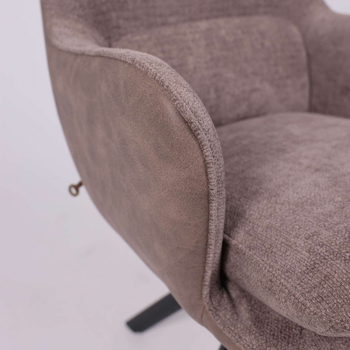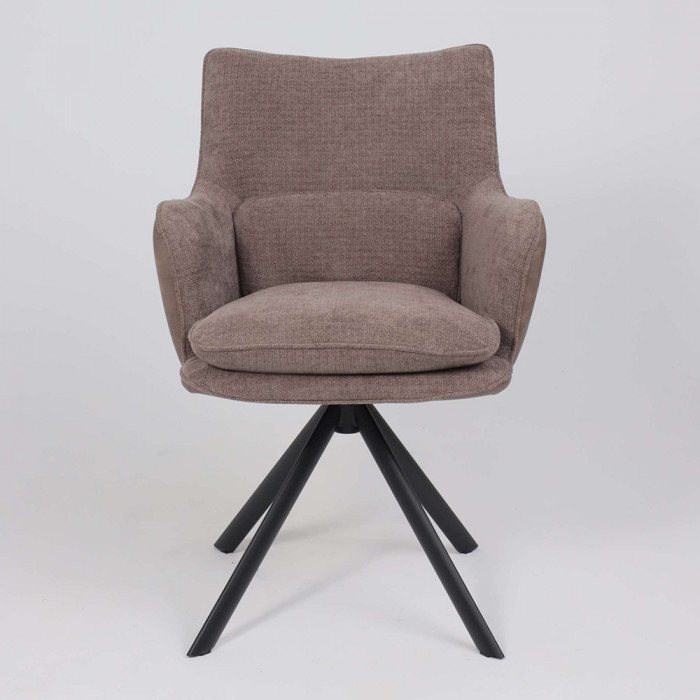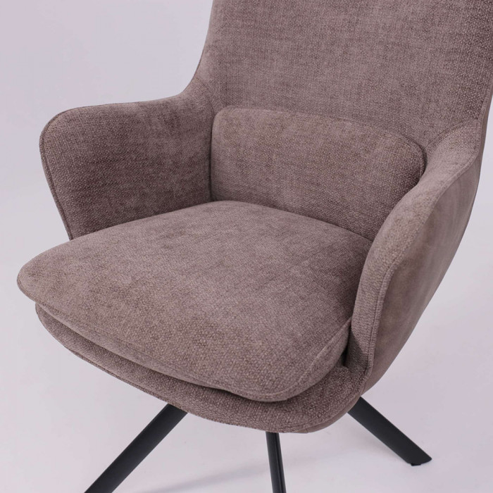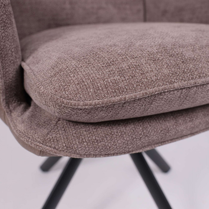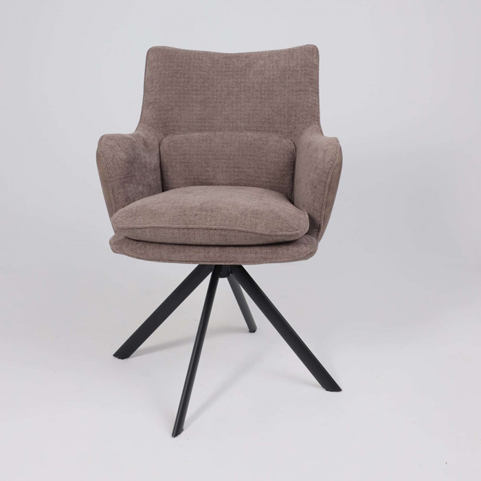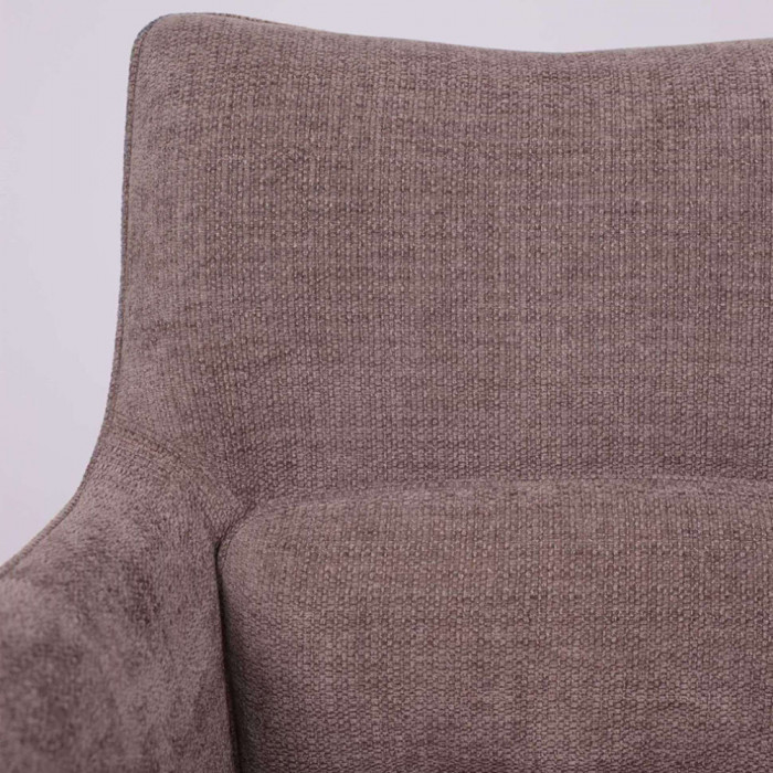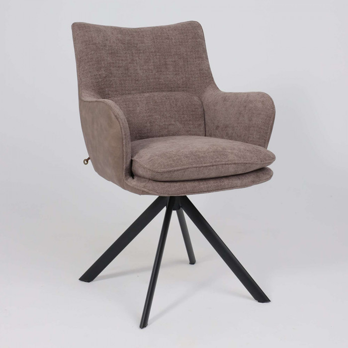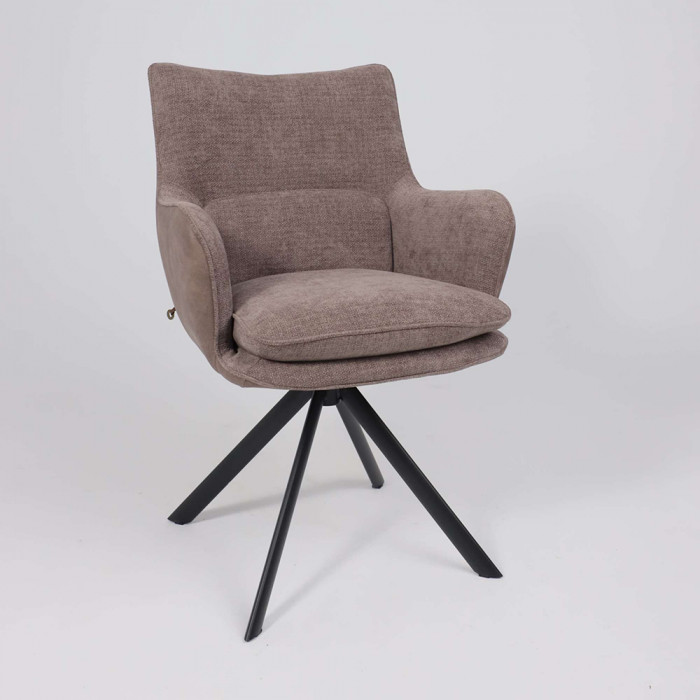 Его ключевая особенность — плавный поворот на 360 градусов, что обеспечивает легкость движений и удобство за обеденным столом. Комбинация благородных материалов — уютного шенилла и тактильной замши — делает стул приятным на ощупь. Прочное металлическое основание гарантирует устойчивость и долговечность, а эргономичные подлокотники добавляют комфорта во время отдыха или беседы.