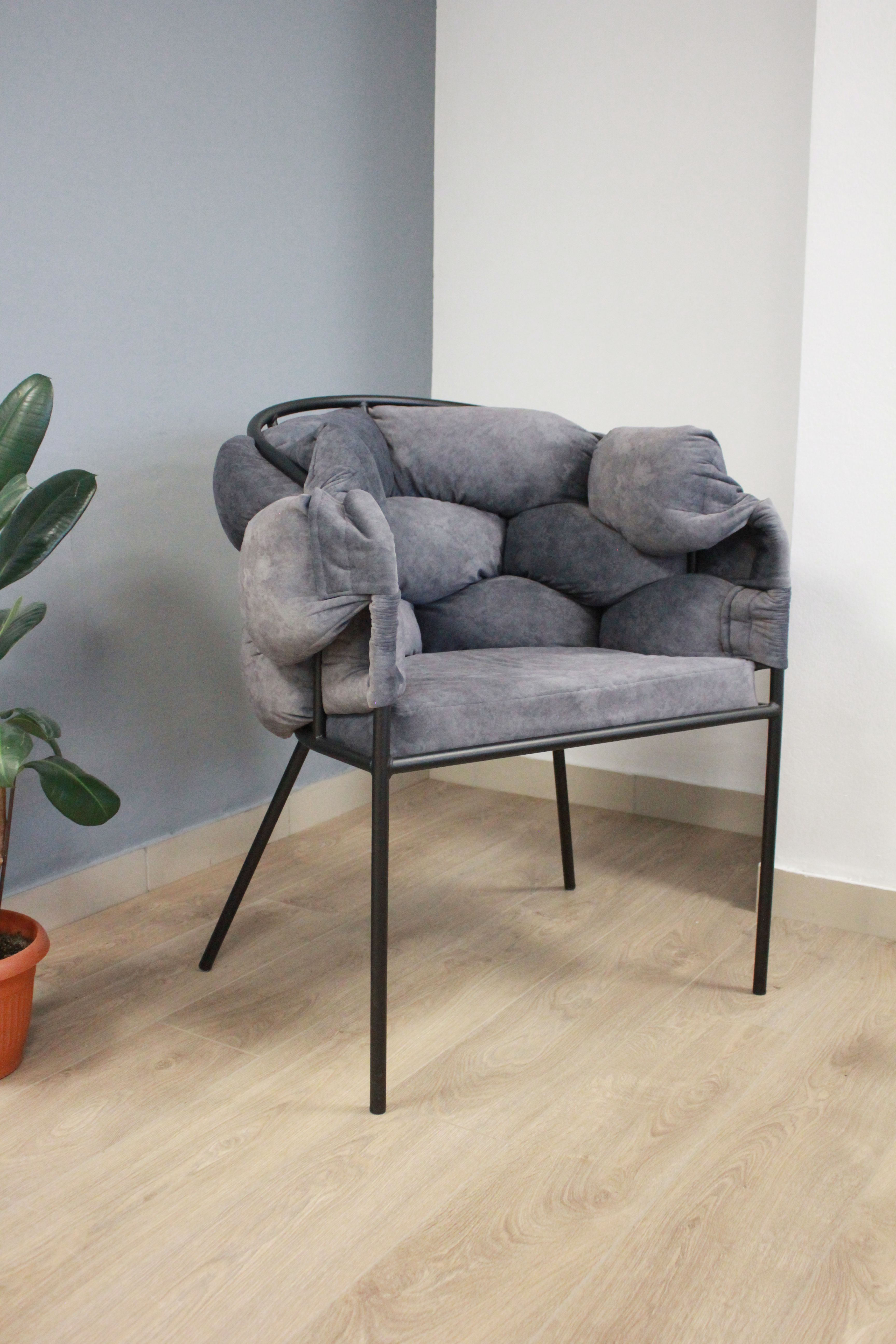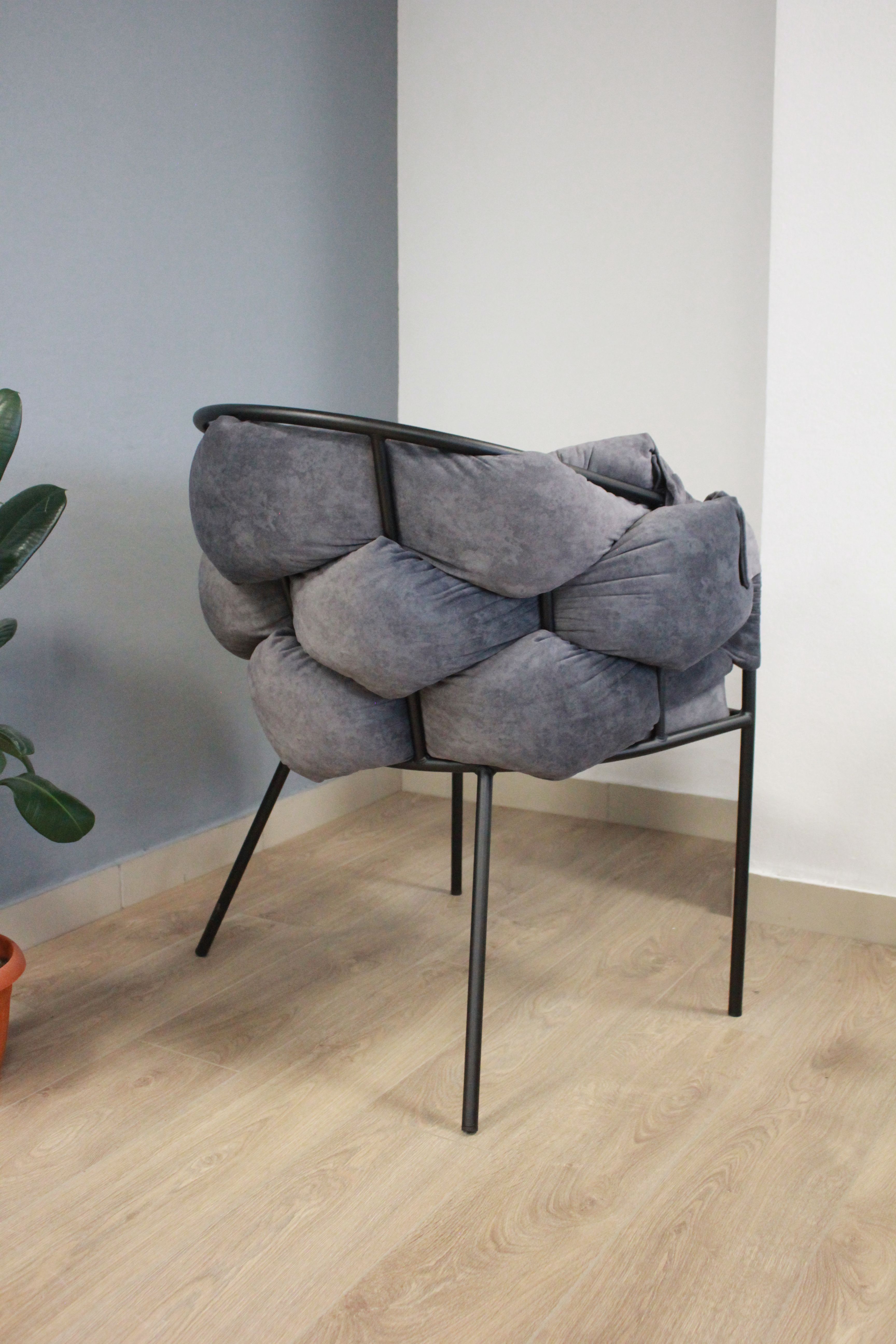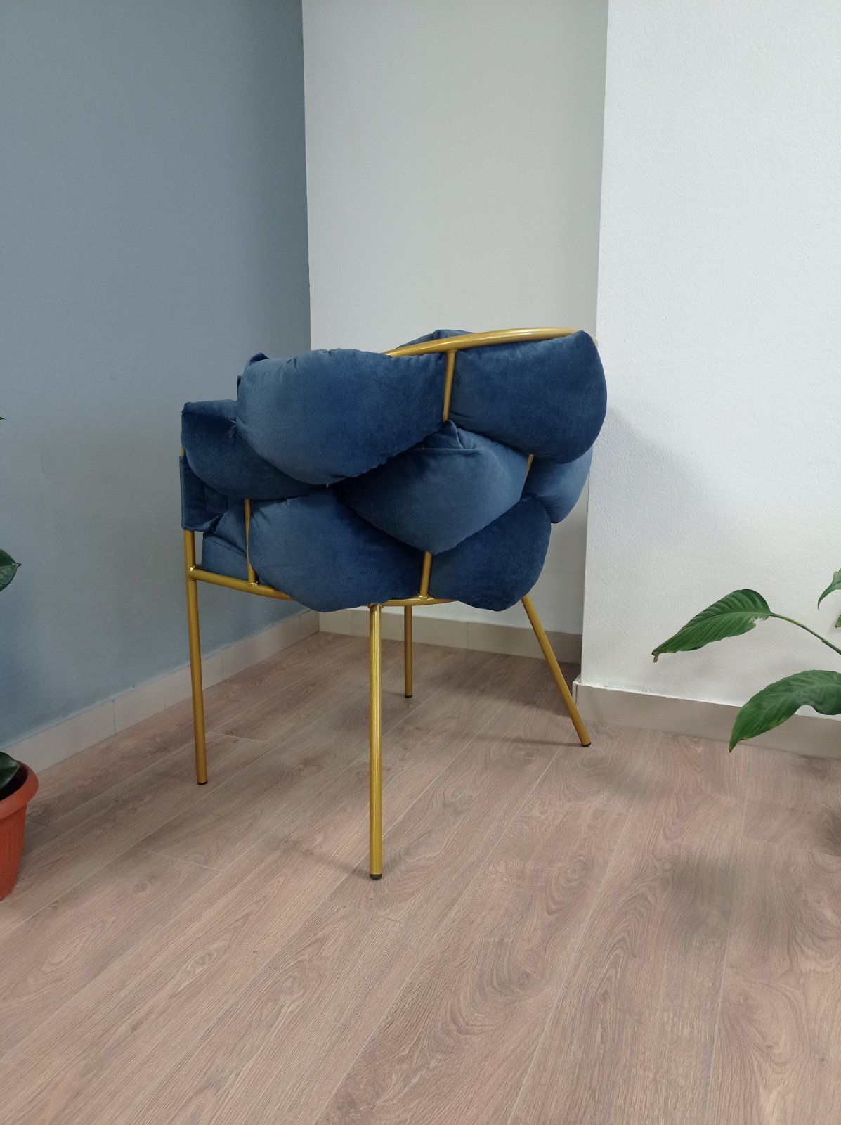 Стул имеет необычную форму каркаса с переплетёнными мягкими элементами. Стул прекрасно подходит для уютного времяпрепровождения. Преимуществом данной модели являются надежность и удобство. Стул предназначен для гостиной, столовой, чилаут зон, салонов красоты.