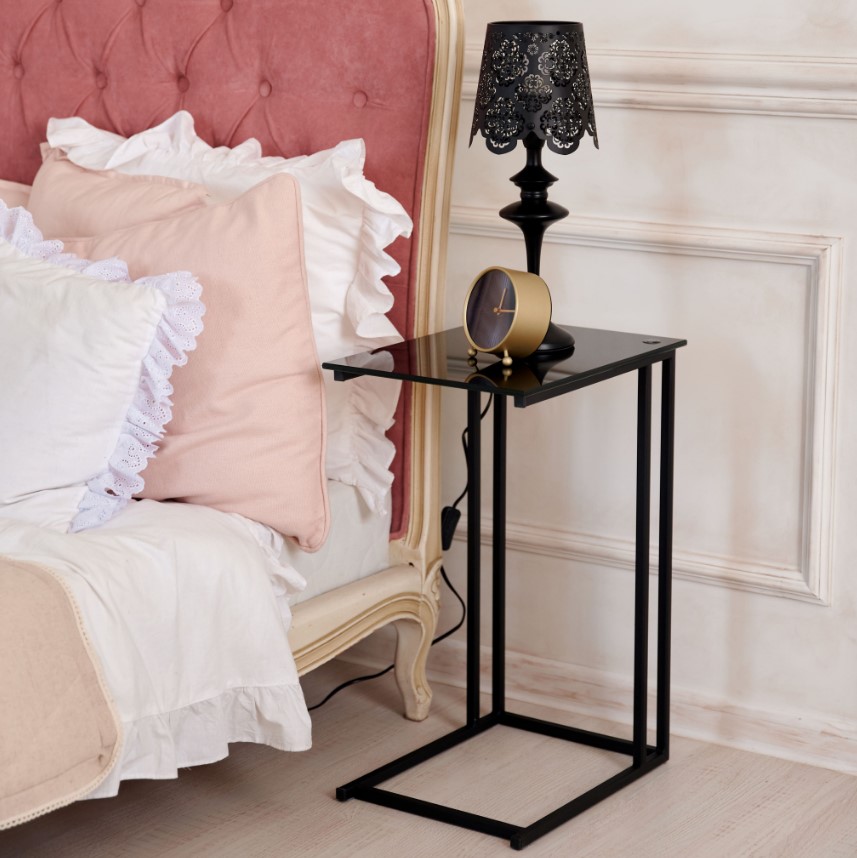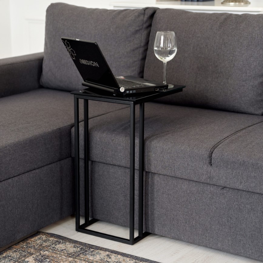 Приставной столик идеальный вариант для тех, кто любит разместиться на диване с чашечкой чая или кофе и книгой. С его помощью можно создать уютный уголок для чтения или рабочее место, а также использовать для хранения журналов, размещения ваз и других декоративных элементов. Черная столешница придаст столику эффектный, дорогой презентабельный вид.