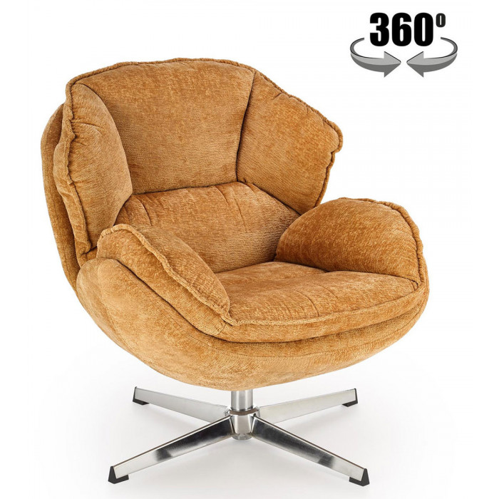 Кресло HALMAR GUIDO с поворотом на 360° и необычной формой сочетает комфорт и стиль. Мягкая тканевая обивка и устойчивая хромированная крестовина делают его практичным и привлекательным выбором для дома.
