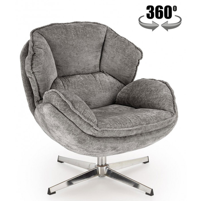 Кресло HALMAR GUIDO с поворотом на 360° и необычной формой сочетает комфорт и стиль. Мягкая тканевая обивка и устойчивая хромированная крестовина делают его практичным и привлекательным выбором для дома.