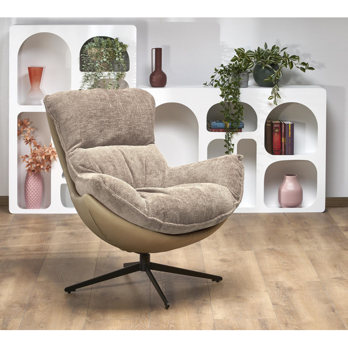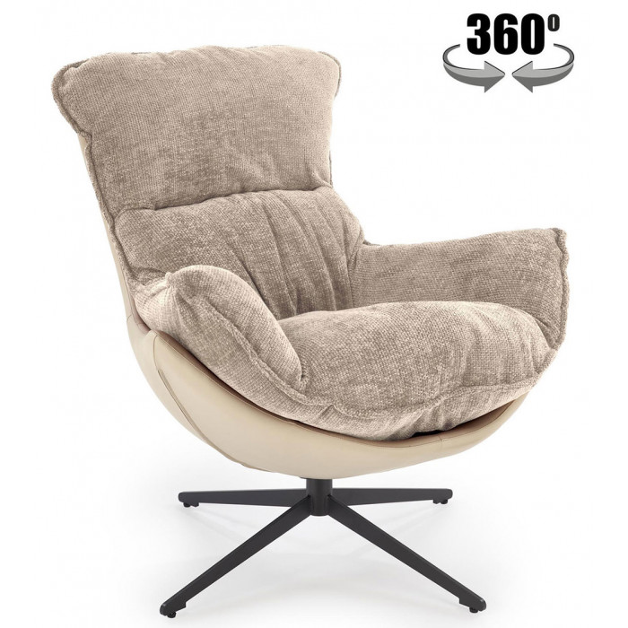 Кресло Halmar LOBSTER (Лобстер) ткань/экокожа бежевый/черный купить в Минске