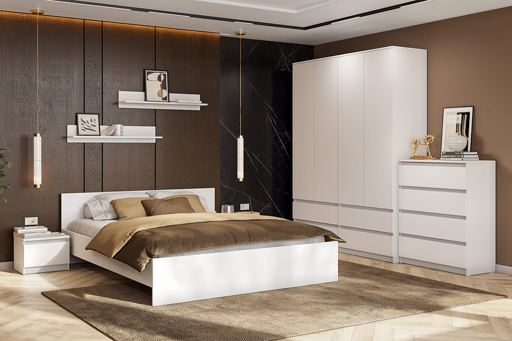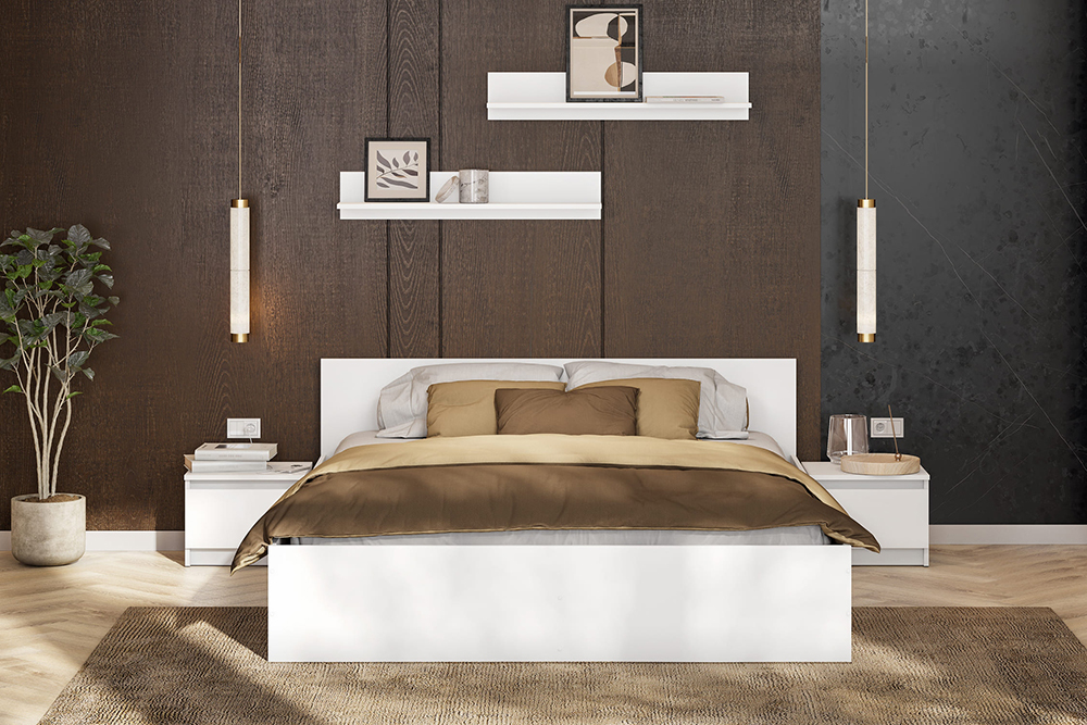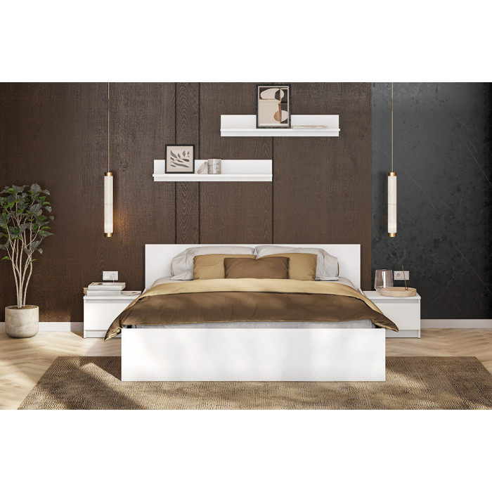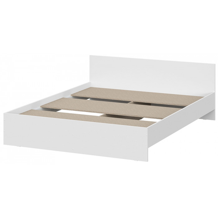 Двуспальная кровать NN Мебель (МС Денвер К) из белой ЛДСП с лаконичным дизайном и спальным местом 160х200 см создает просторную зону для комфортного сна. Модель отличается строгой геометрией и устойчивой конструкцией, а матрас приобретается отдельно.