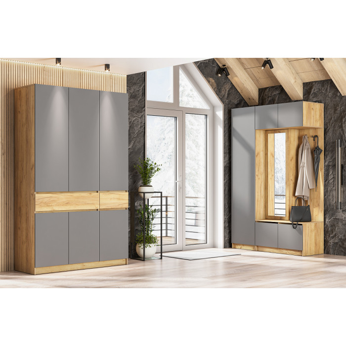 Шкаф NN Мебель Авиньон дуб крафт золотой/графит серый, с зеркалом купить в Минске