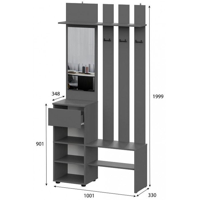 Шкаф NN Мебель Денвер графит серый, с зеркалом купить в Минске