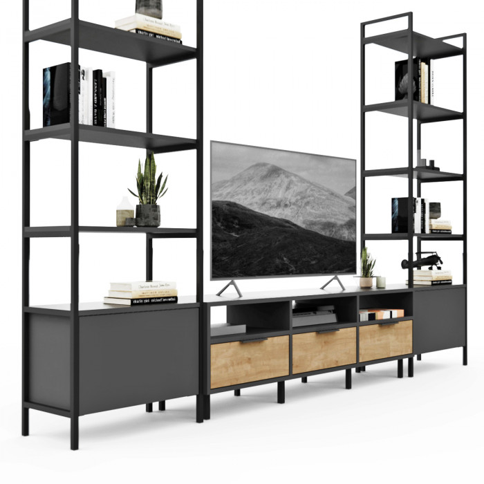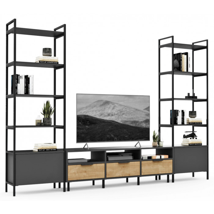 Стенка Crafto Лофт Агата Бонд 10 золотистый дуб/графит купить в Минске