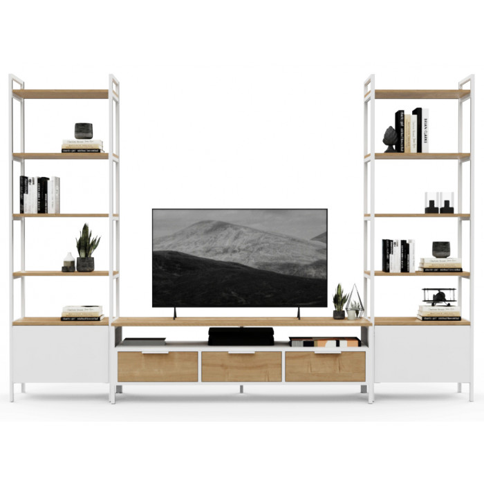 Стенка Crafto Лофт Фрида Бонд 06 дуб золотистый/белый матовый купить в Минске