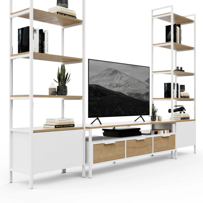Все тумбы Crafto легко образуют комплекты со стеллажами, они универсальны и легко впишутся в любую гостиную.