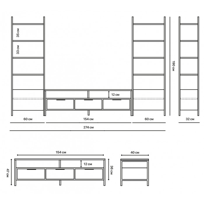 Все тумбы Crafto легко образуют комплекты со стеллажами, они универсальны и легко впишутся в любую гостиную.