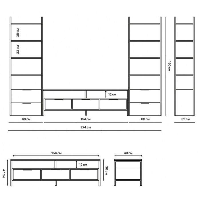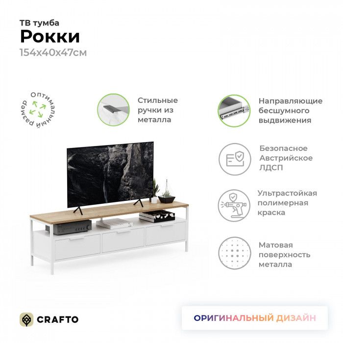 Все тумбы Crafto легко образуют комплекты со стеллажами, они универсальны и легко впишутся в любую гостиную.
