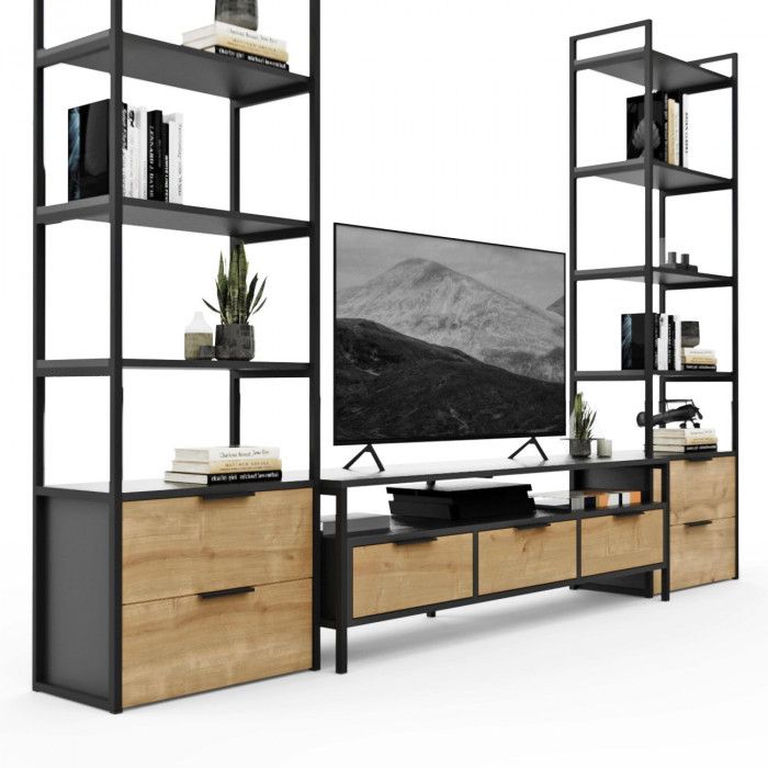 Стенка Crafto Лофт Фрида Квентин 16 дуб золотистый/графит купить в Минске