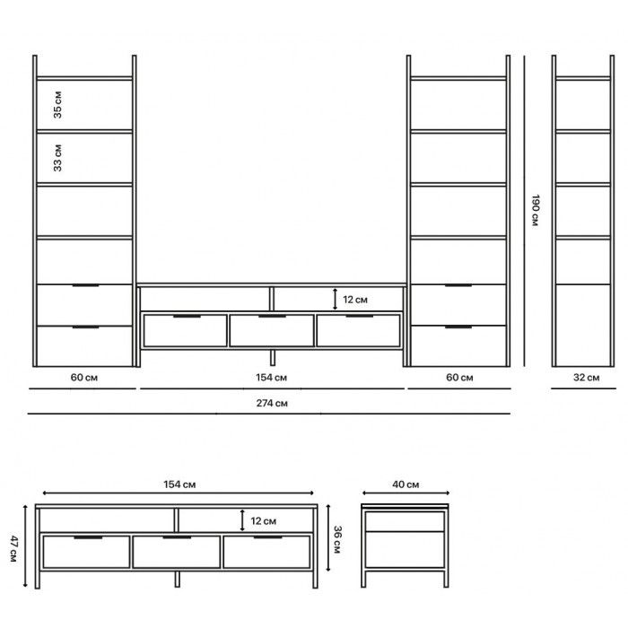 Все тумбы Crafto легко образуют комплекты со стеллажами, они универсальны и легко впишутся в любую гостиную.