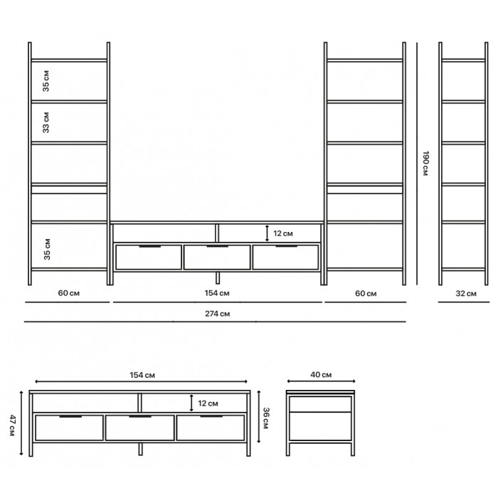 Все тумбы Crafto легко образуют комплекты со стеллажами, они универсальны и легко впишутся в любую гостиную.