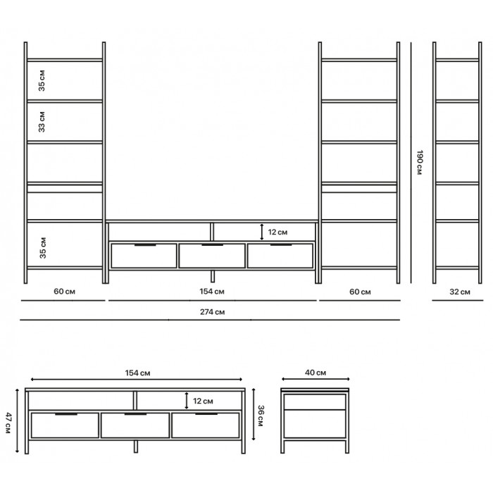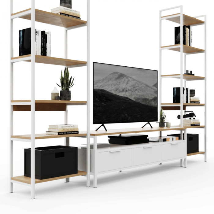 Все тумбы Crafto легко образуют комплекты со стеллажами, они универсальны и легко впишутся в любую гостиную.