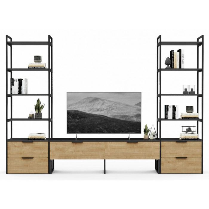 Стенка Crafto Лофт Рокки Квентин 10 золотистый дуб/графит купить в Минске