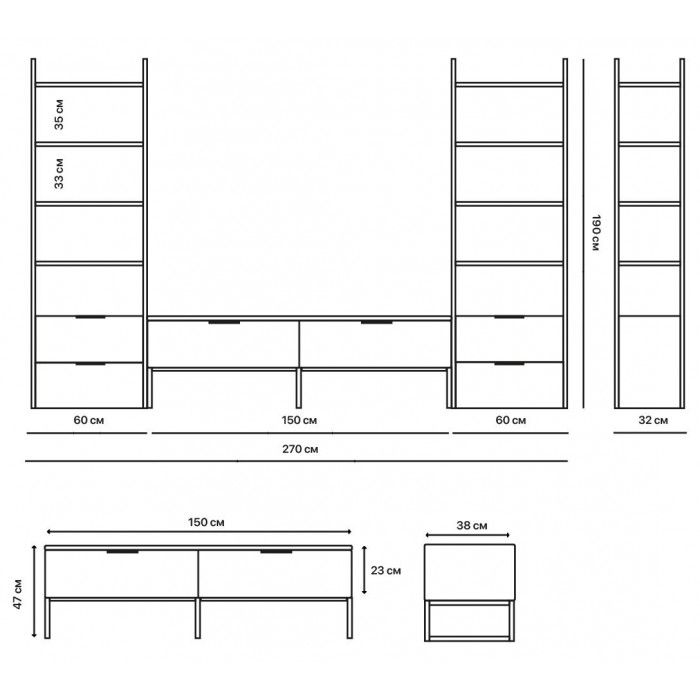 Все тумбы Crafto легко образуют комплекты со стеллажами, они универсальны и легко впишутся в любую гостиную.