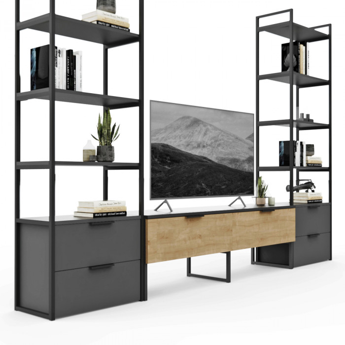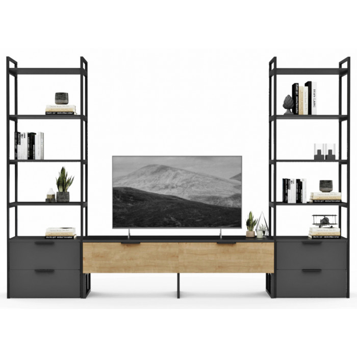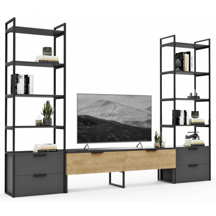 Стенка Crafto Лофт Рокки Квентин 11 графит/золотистый дуб купить в Минске