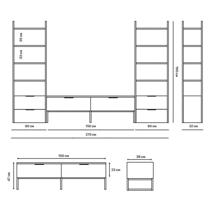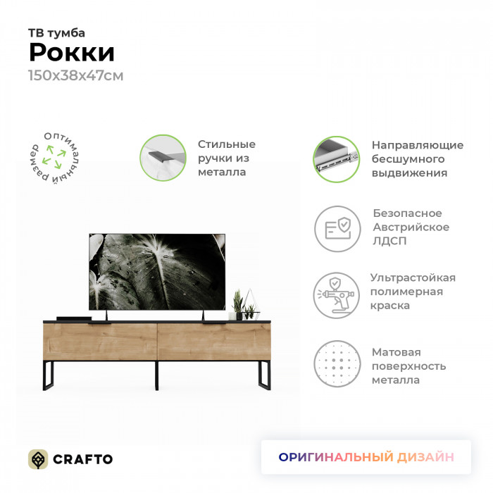 Все тумбы Crafto легко образуют комплекты со стеллажами, они универсальны и легко впишутся в любую гостиную.