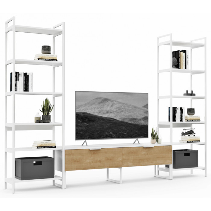 Стенка Crafto Лофт Рокки Симпл 02 золотистый дуб/белый матовый купить в Минске