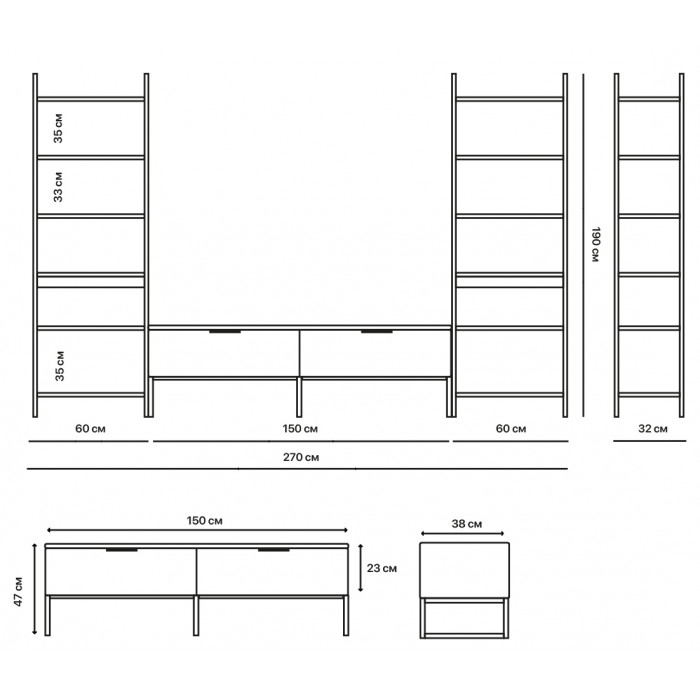 Все тумбы Crafto легко образуют комплекты со стеллажами, они универсальны и легко впишутся в любую гостиную.