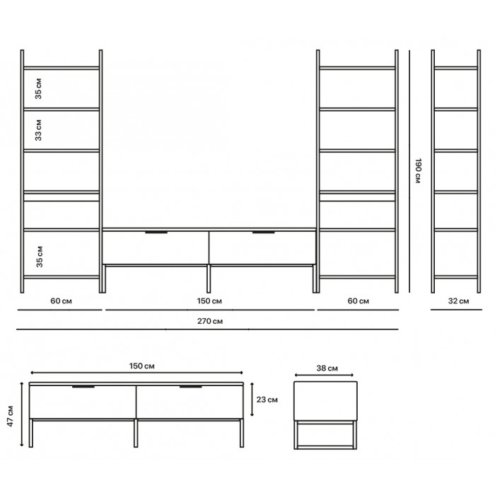 Все тумбы Crafto легко образуют комплекты со стеллажами, они универсальны и легко впишутся в любую гостиную.