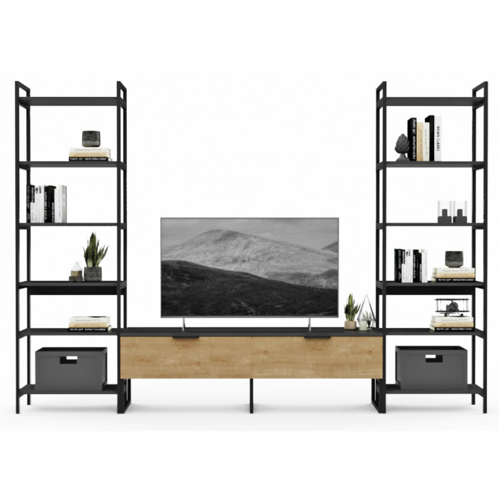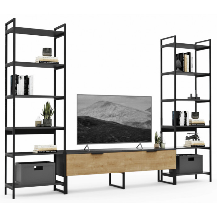 Стенка Crafto Лофт Рокки Симпл 06 графит/золотистый дуб купить в Минске