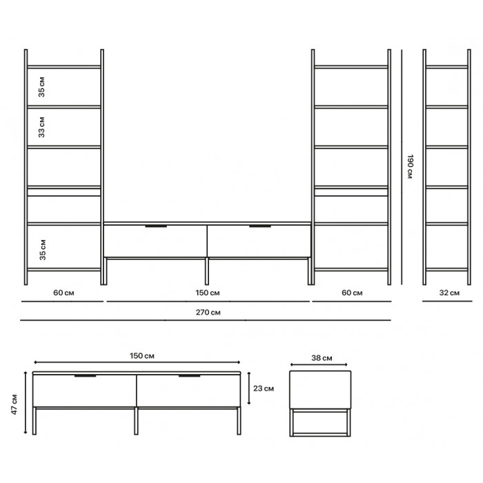 Все тумбы Crafto легко образуют комплекты со стеллажами, они универсальны и легко впишутся в любую гостиную.