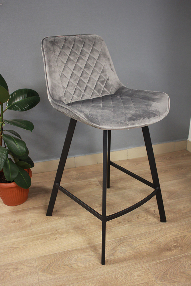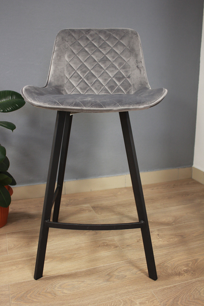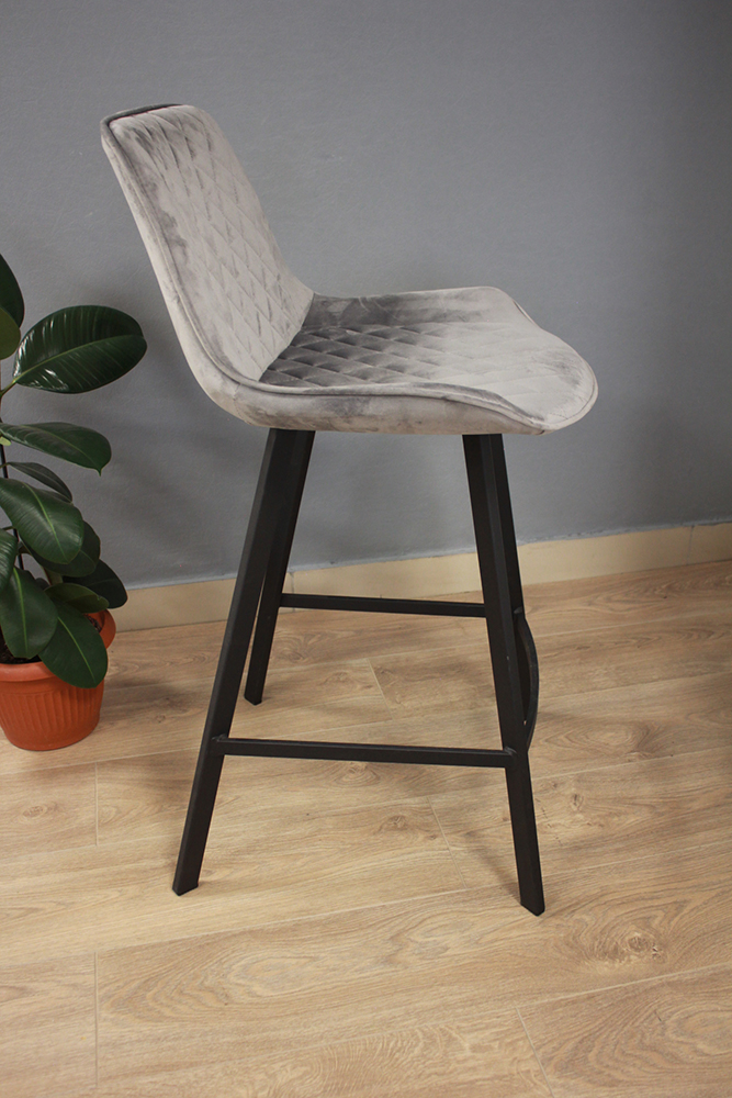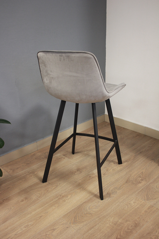 Классическая модель мягкого стула, который подходит для обустройства как бара, так и ресторана, домашней кухни. Высокие и расширенные ножки соединены тремя перегородками, которые выполняют роль подножки. Благодаря этому на стул удобно усаживаться. Конструкция сидения дополнена завышенной спинкой. Велюровая обивка представлена в следующих цветовых решениях: серый, светло-серый, зеленый.
