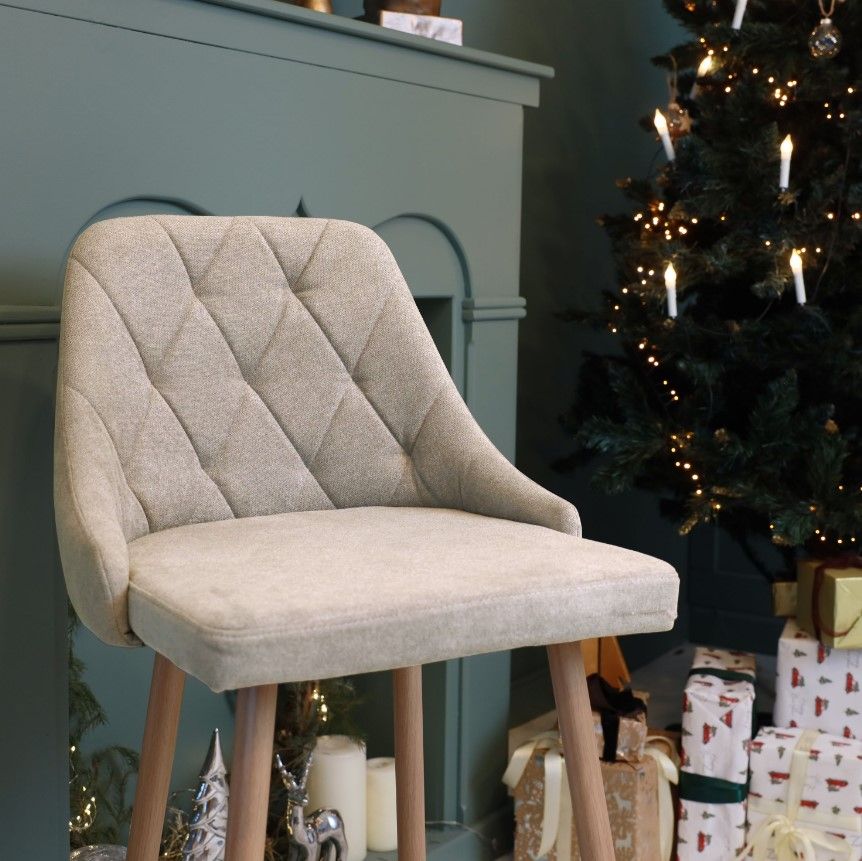 Модель, с которой не приходится выбирать между комфортом и стильным дизайном. Деревянный каркас гармонично сочетается с мягким сидением и высокой спинкой. Светлые ножки могут комбинироваться как с бежевой, так и с серой тканевой обивкой. Ромбообразная строчка создает иллюзию узора на поверхности. Барный стул впишется в классический и современный интерьер кухни, гостиной.