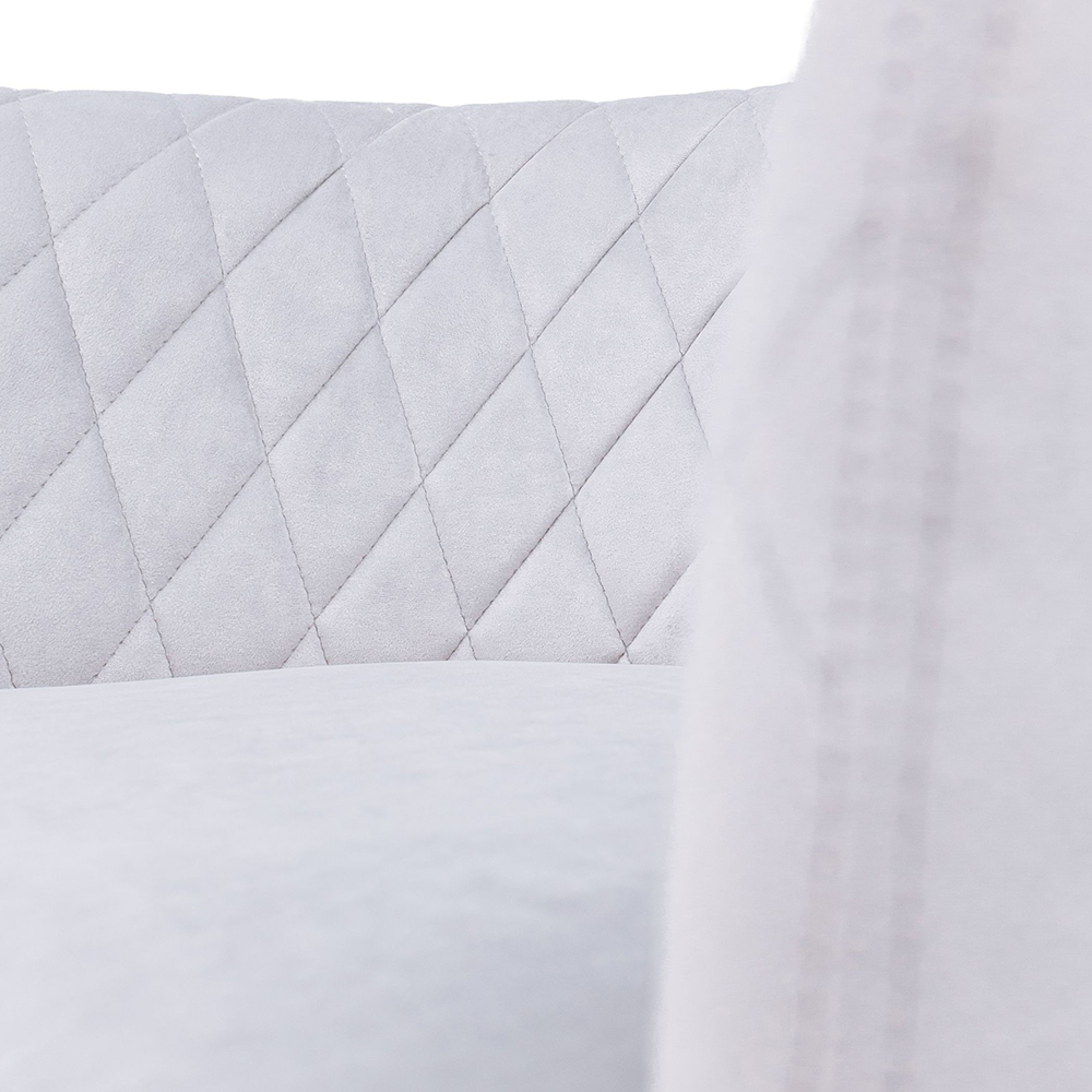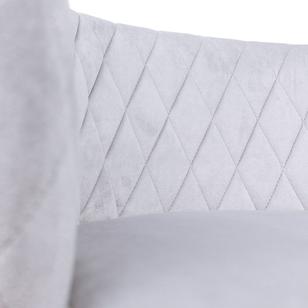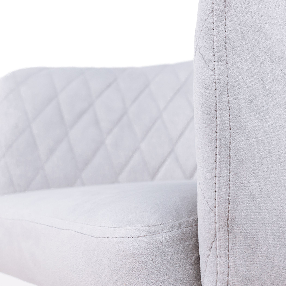 Обивка спинки украшена декоративной стежкой с рисунком в виде ромбов. Основание выполнено из металла, окрашенного в черный цвет. Модель оснащена подножкой. Высота сиденья регулируется. Изделие рассчитано на нагрузку до 120 кг.
