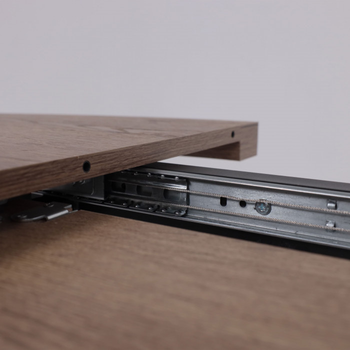 Одной из ключевых особенностей стола ALEN является его синхронно-раздвижной механизм, который позволяет быстро и легко увеличивать размер столешницы. В разложенном состоянии он достигает 160 см в длину, что удобно для приема до шести человек. Этот механизм обеспечивает надежность и стабильность, избавляя от необходимости беспокоиться о прочности конструкции даже при больших нагрузках.