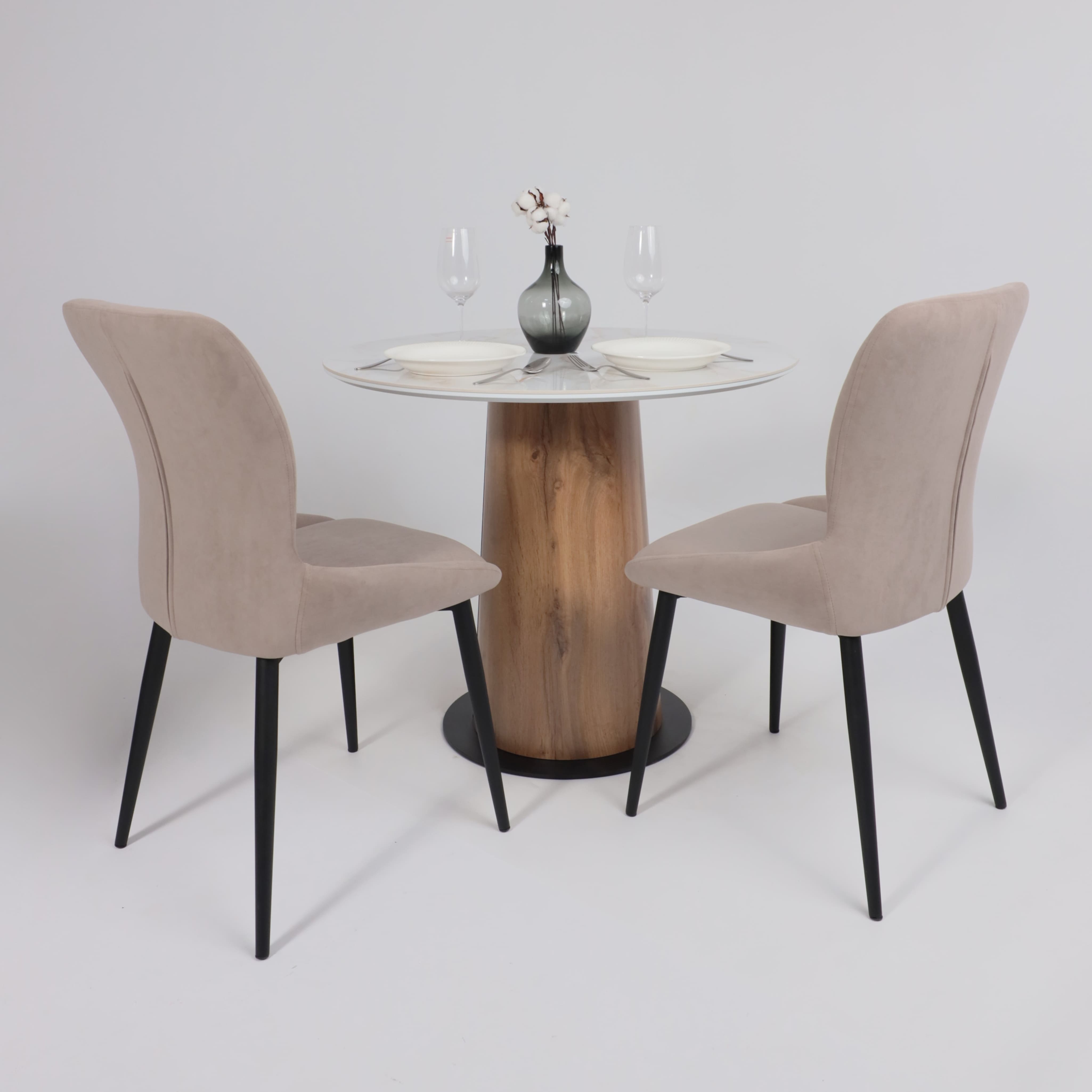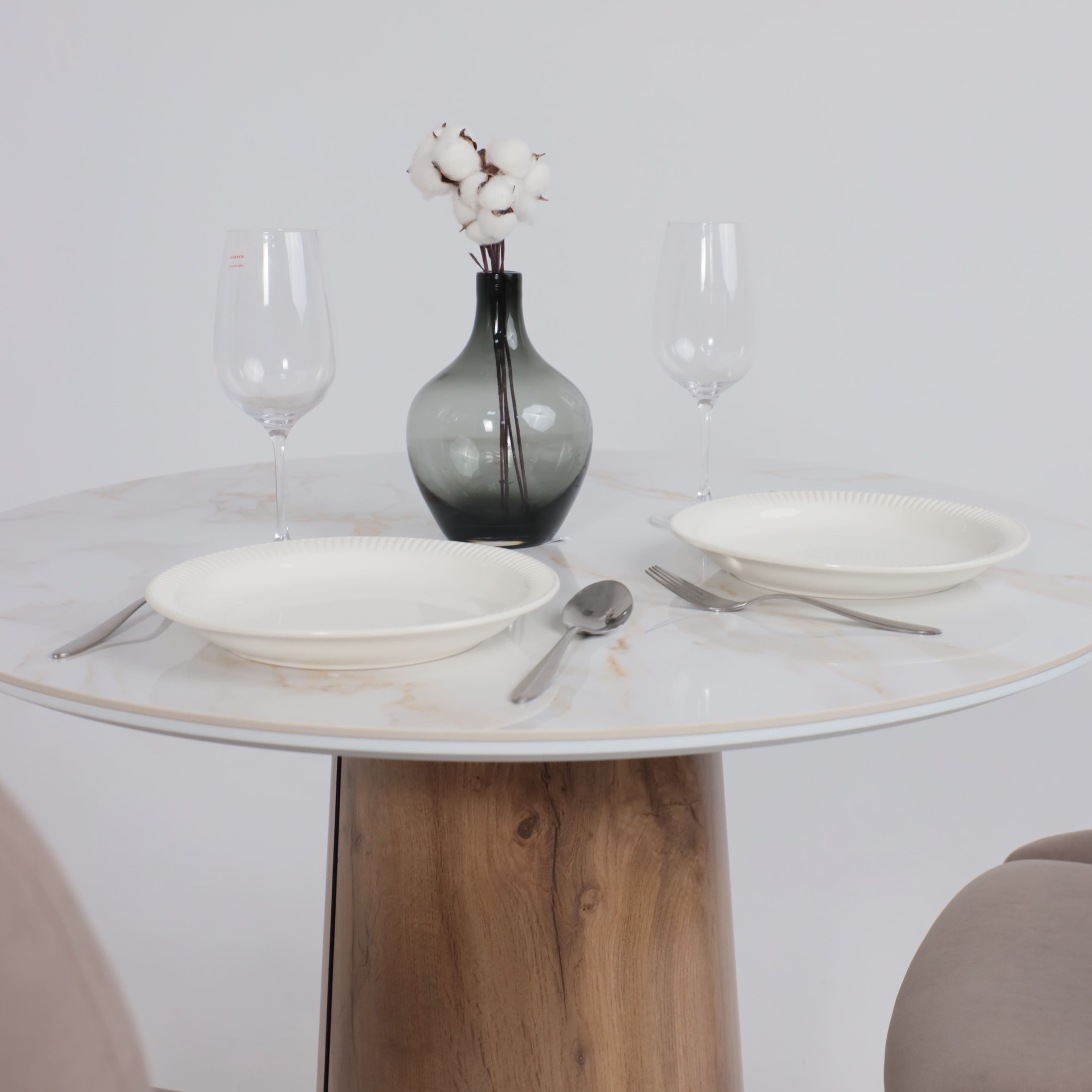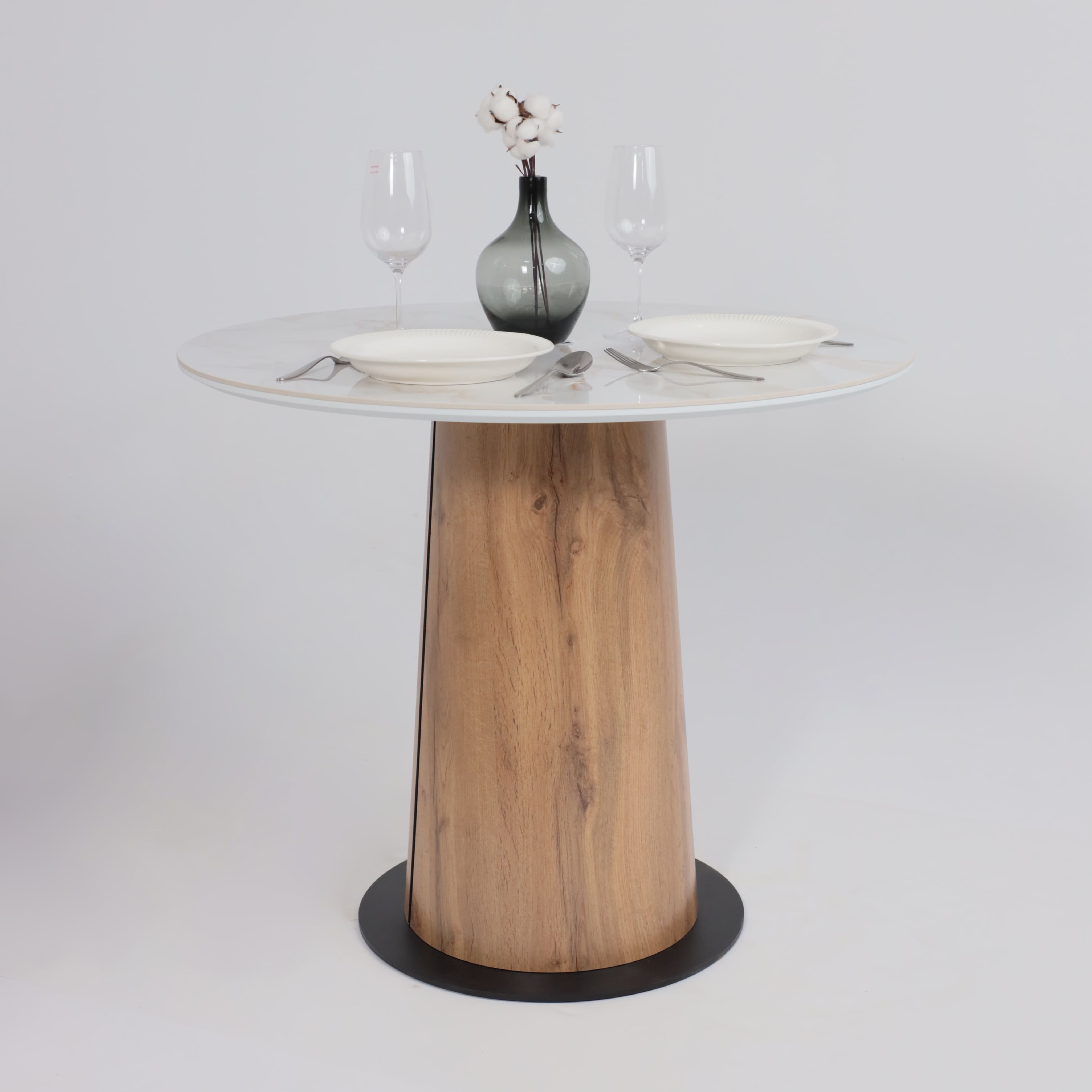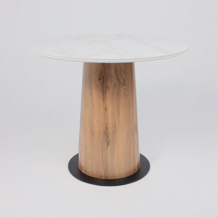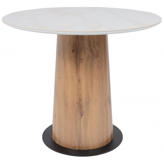 Стол AV 2317 МДФ+керамика 900*900 белый, глянцевый CARLA LARKIN/черный+HPL Дуб Вотан купить в Минске