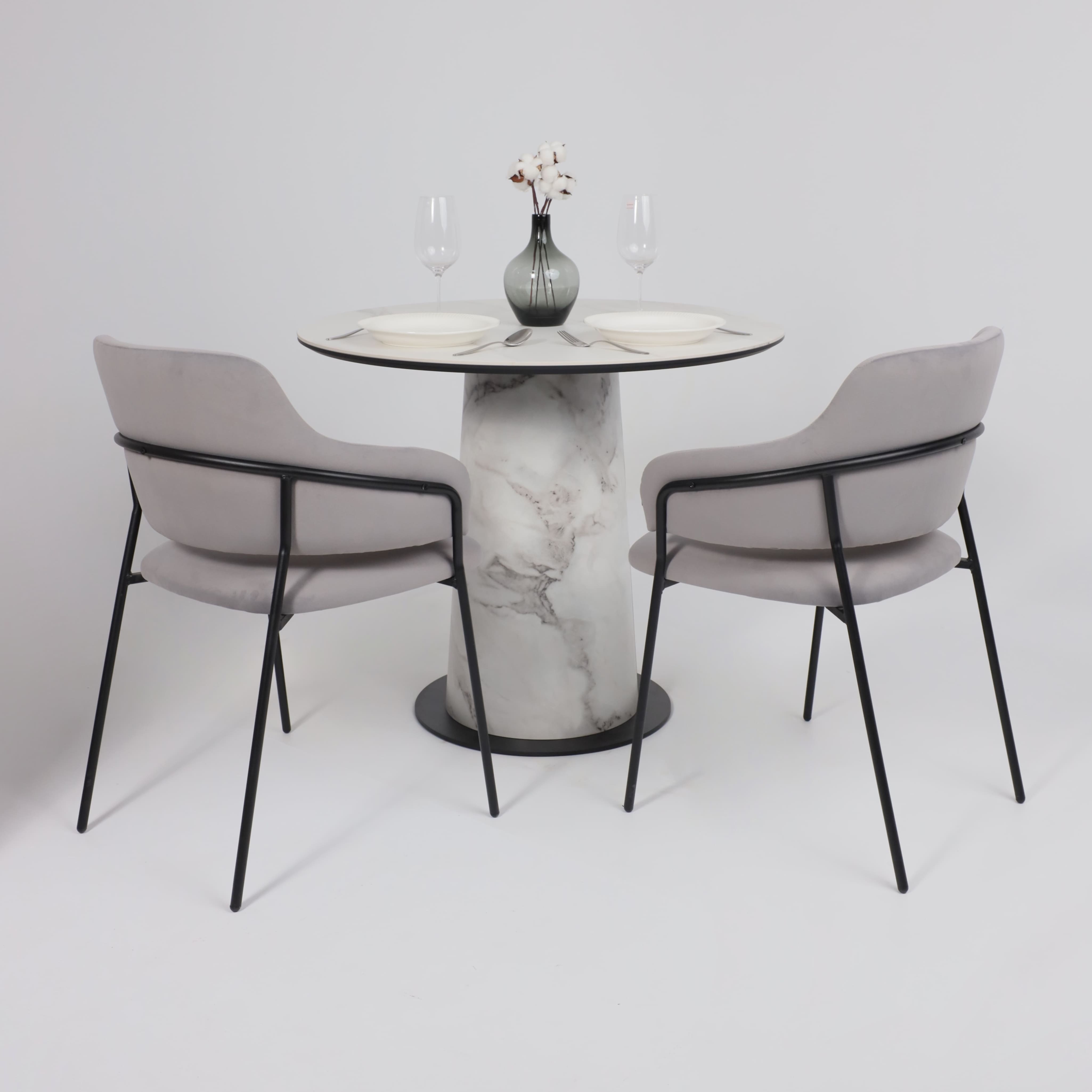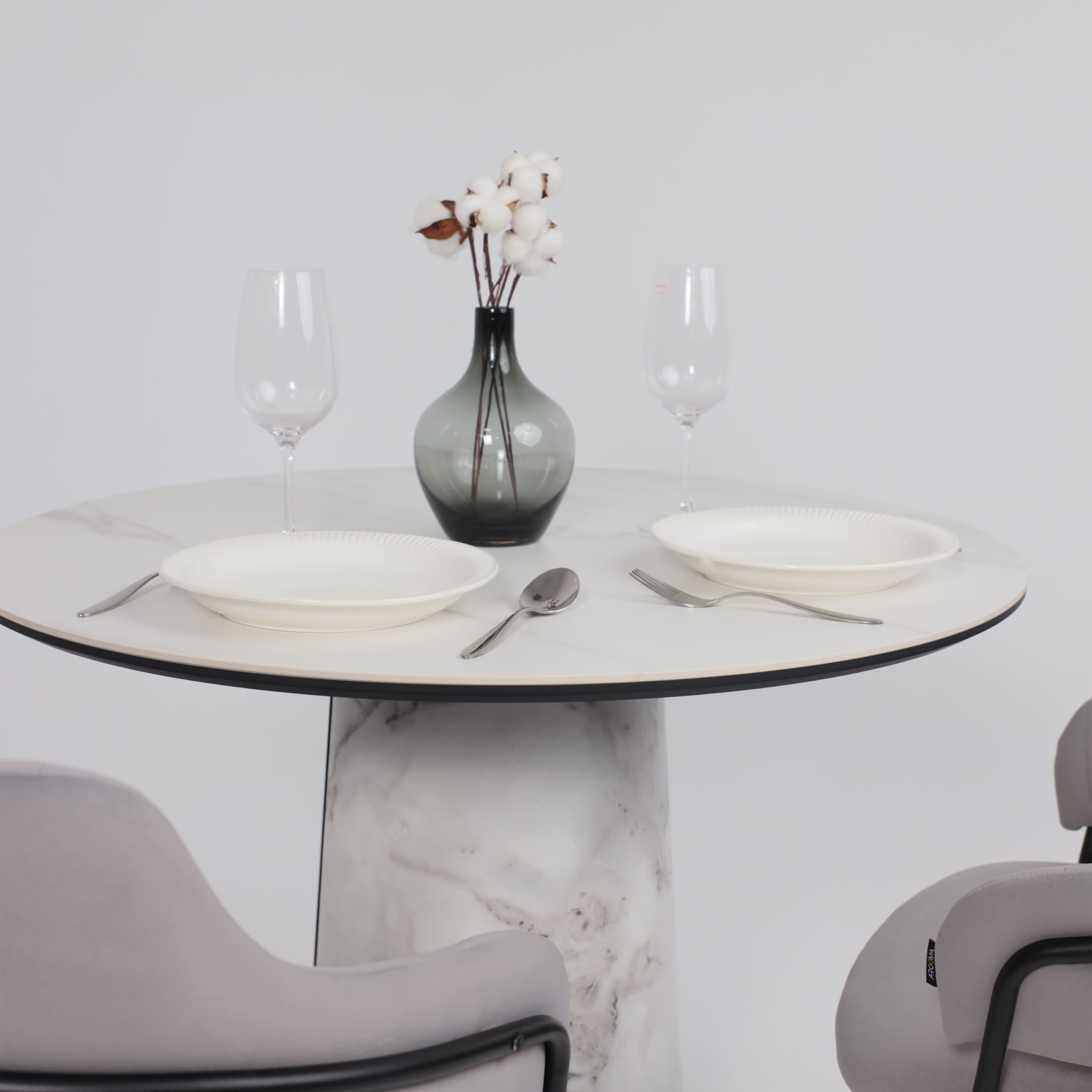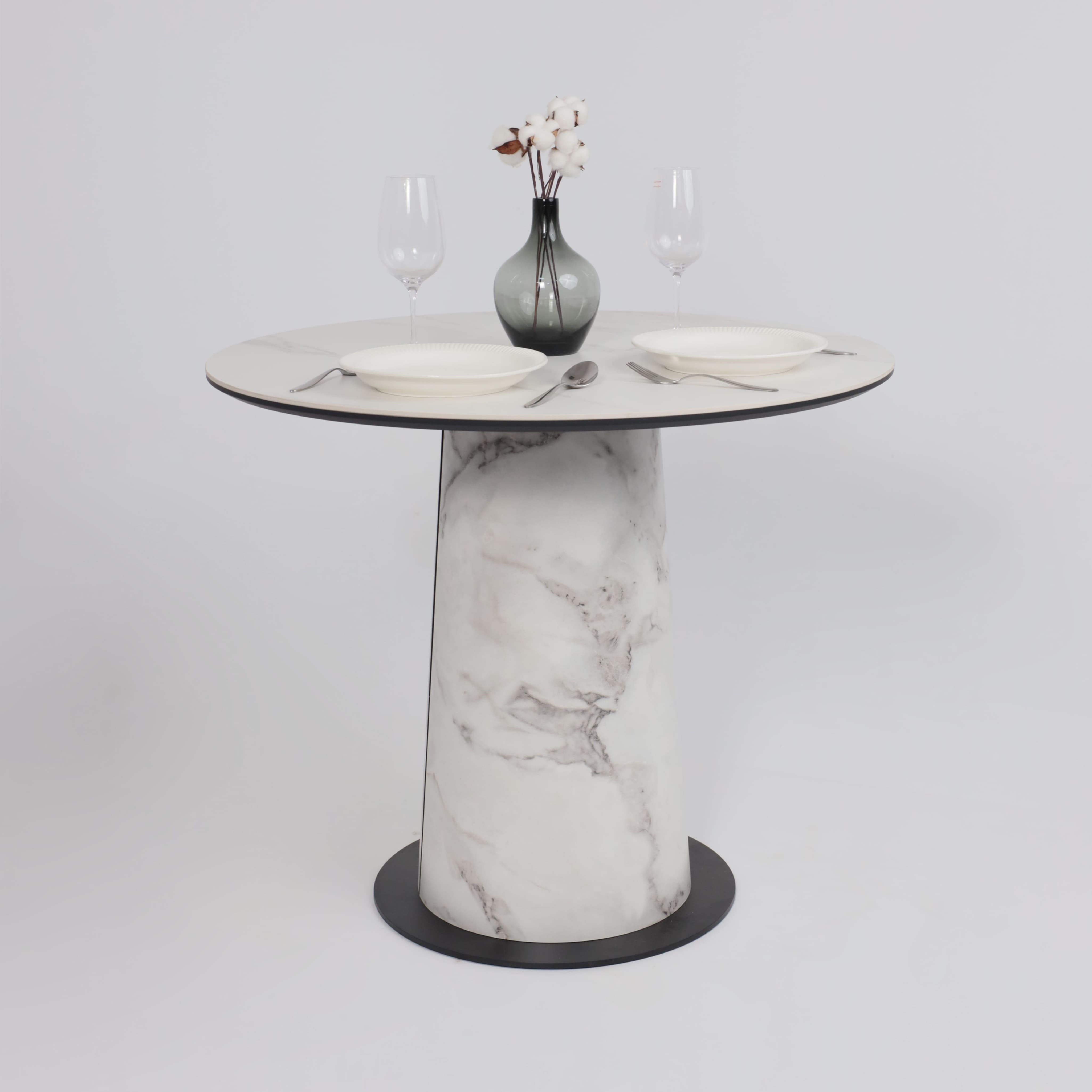 Стол AV 2317 МДФ+керамика 900*900 белый, матовый SNOW WHITE/черный+HPL Виктори натуральный купить в Минске