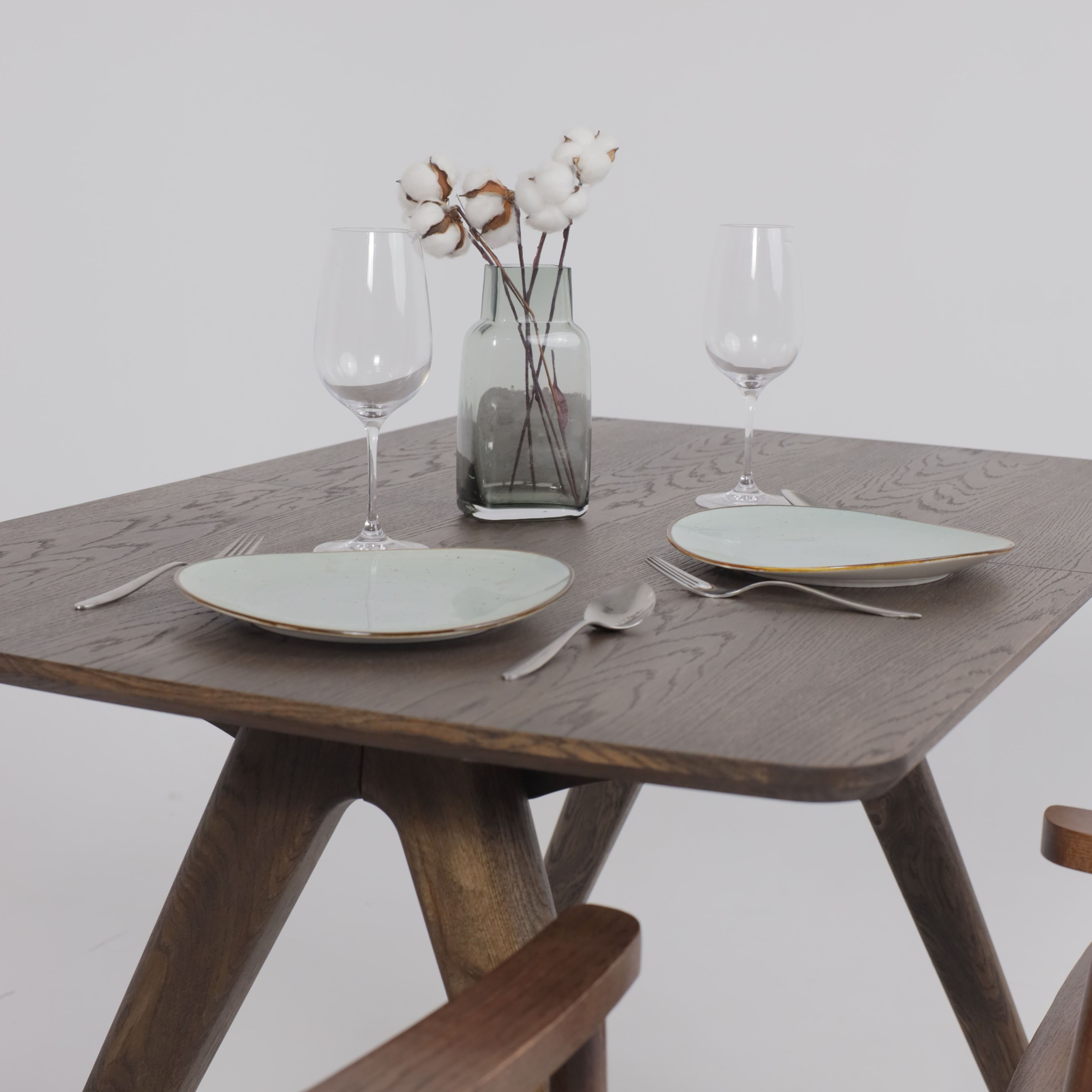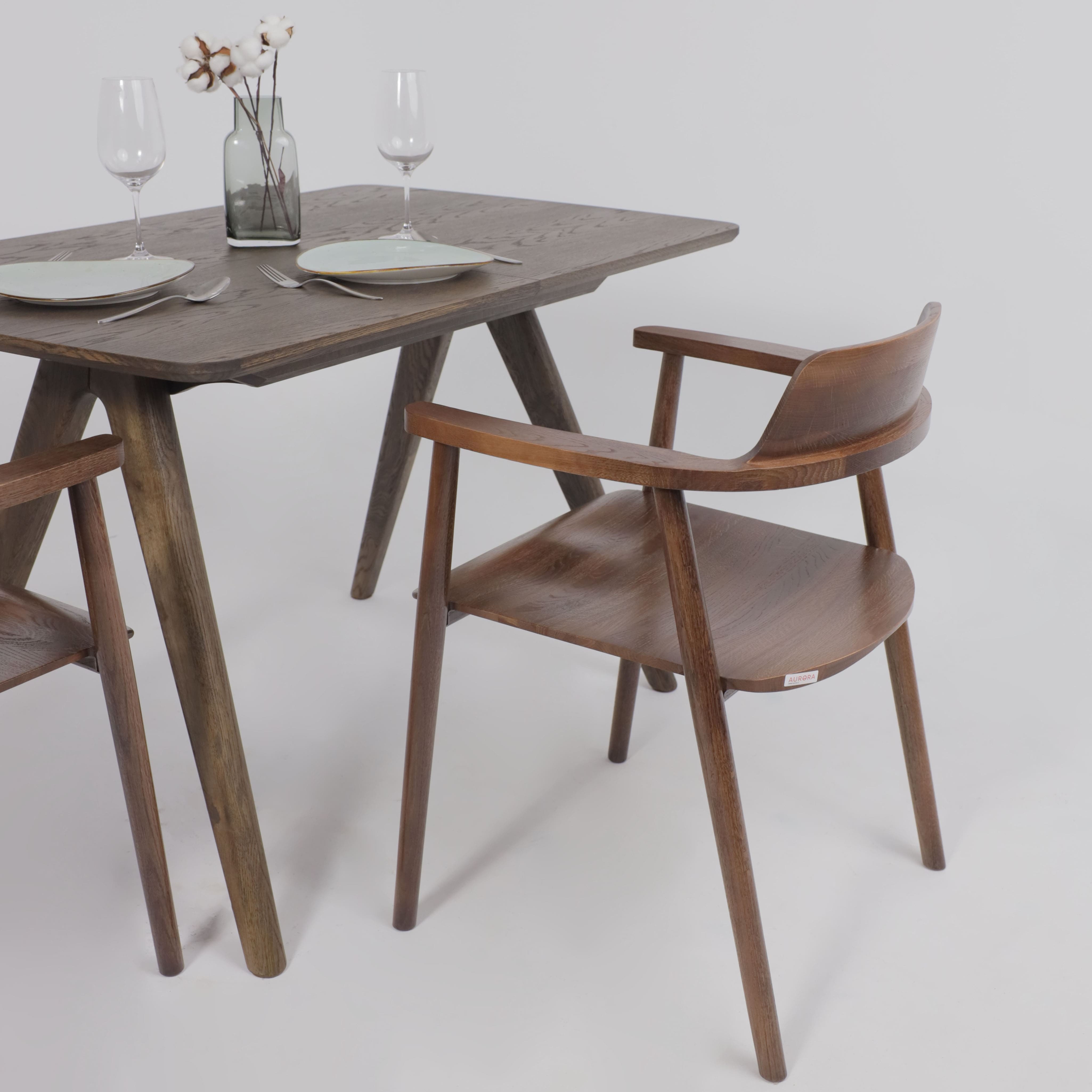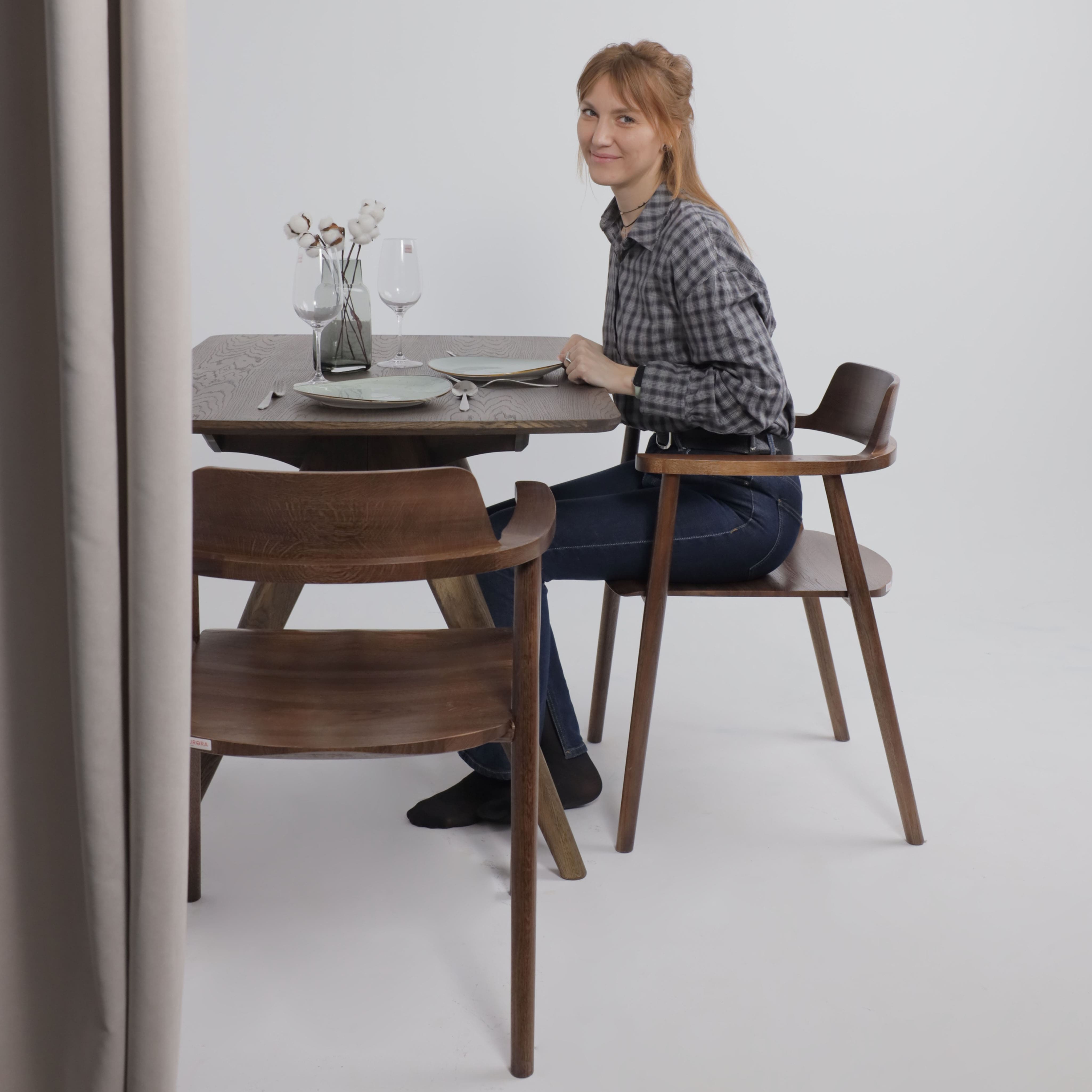 Столешница из натурального массива дуба, с его характерными текстурой и цветом, привносит в интерьер теплоту и традиции. Массивное основание также из дуба, с прочными ножками, гарантирует устойчивость и долговечность стола.