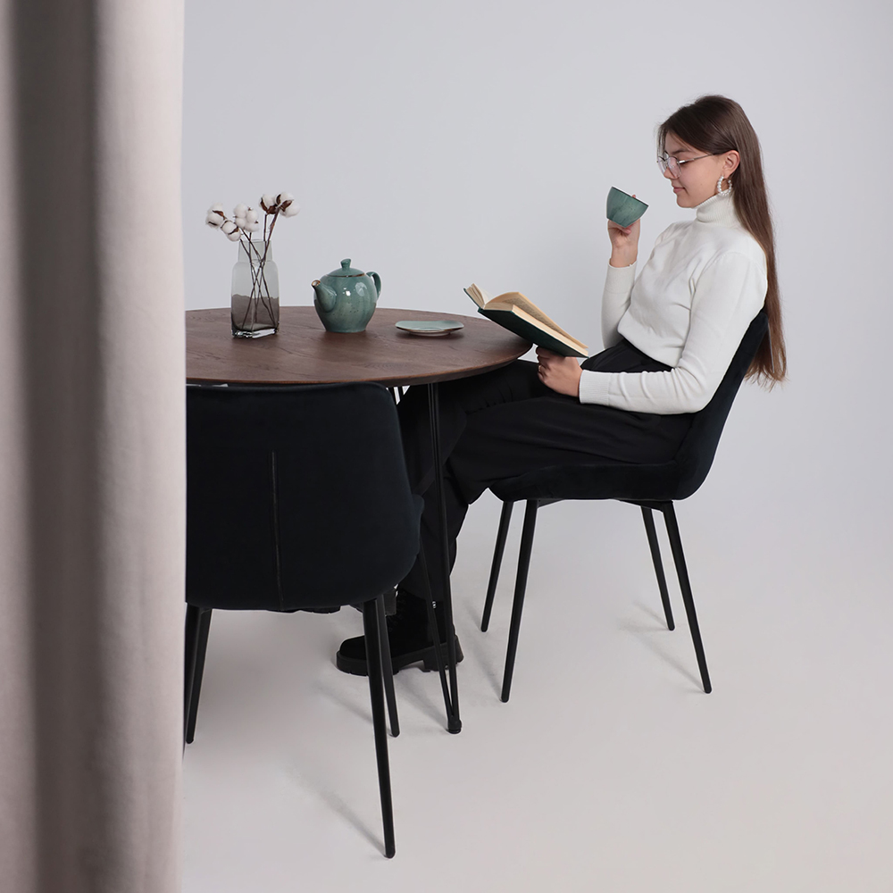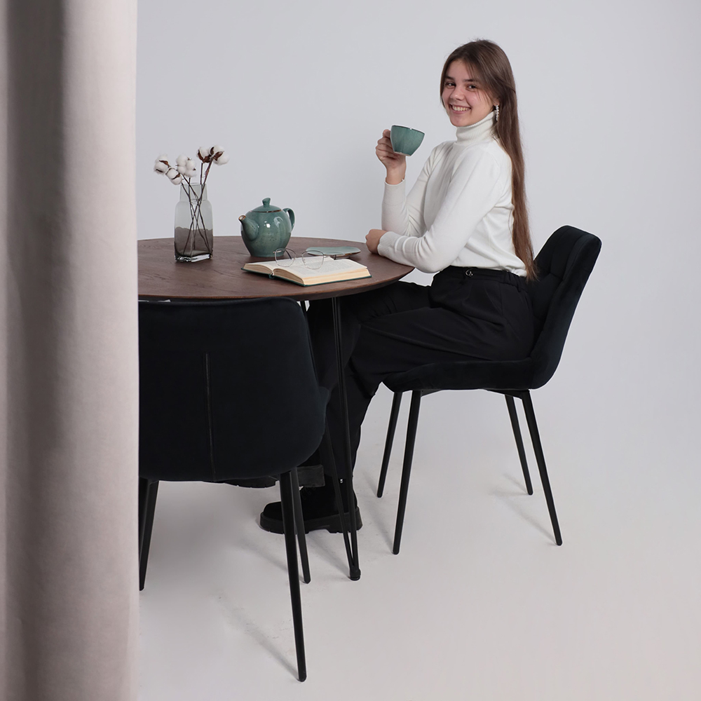 Круглая столешница диаметром 100 см создает уютную атмосферу для семейных обедов, комфортно вмещая до 5 человек. Стол гармонично сочетает в себе лаконичный дизайн и функциональность, делая его идеальным решением как для небольших кухонь, так и для просторных столовых.