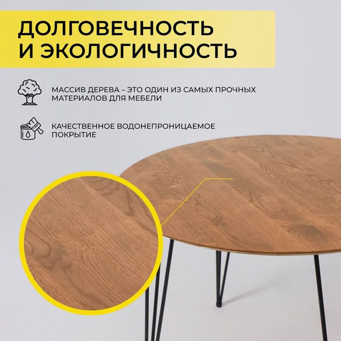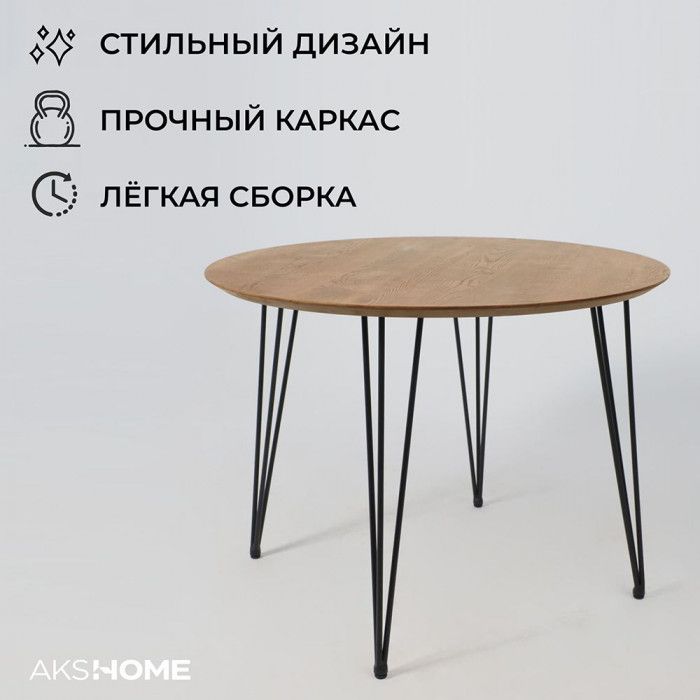 Круглая столешница диаметром 100 см создает уютную атмосферу для семейных обедов, комфортно вмещая до 5 человек. Стол гармонично сочетает в себе лаконичный дизайн и функциональность, делая его идеальным решением как для небольших кухонь, так и для просторных столовых.